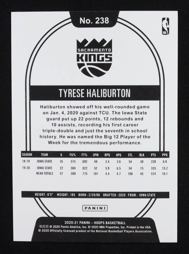 Tyrese Haliburton 2020-21 Hoops #238 RC