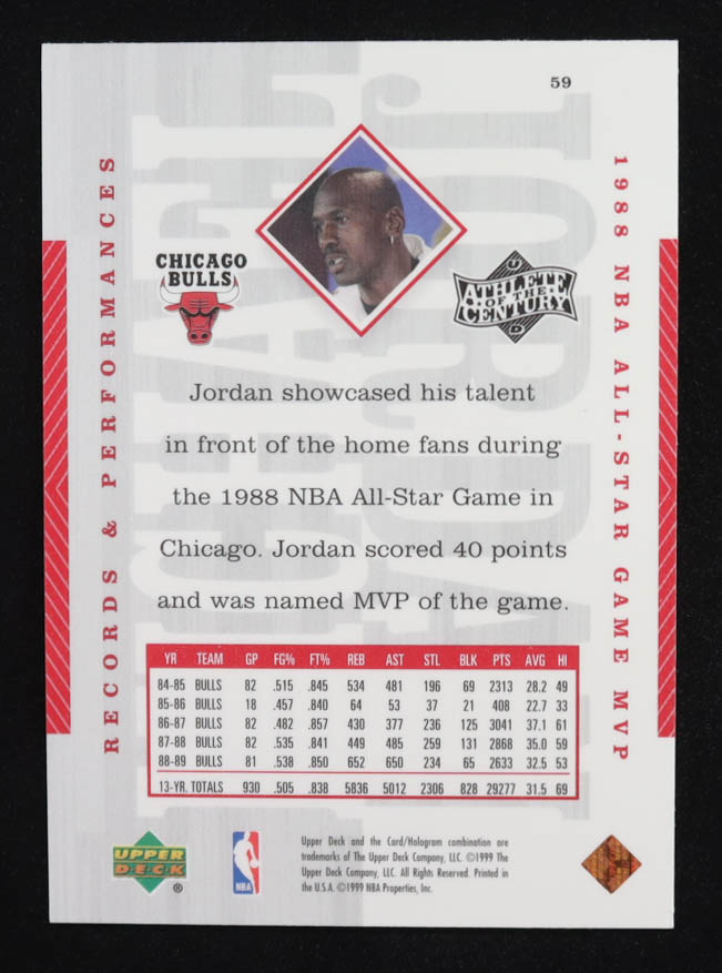 Michael Jordan 1999 Upper Deck Michael Jordan Athlete of the Century #59 1988 NBA All-Star Game MVP