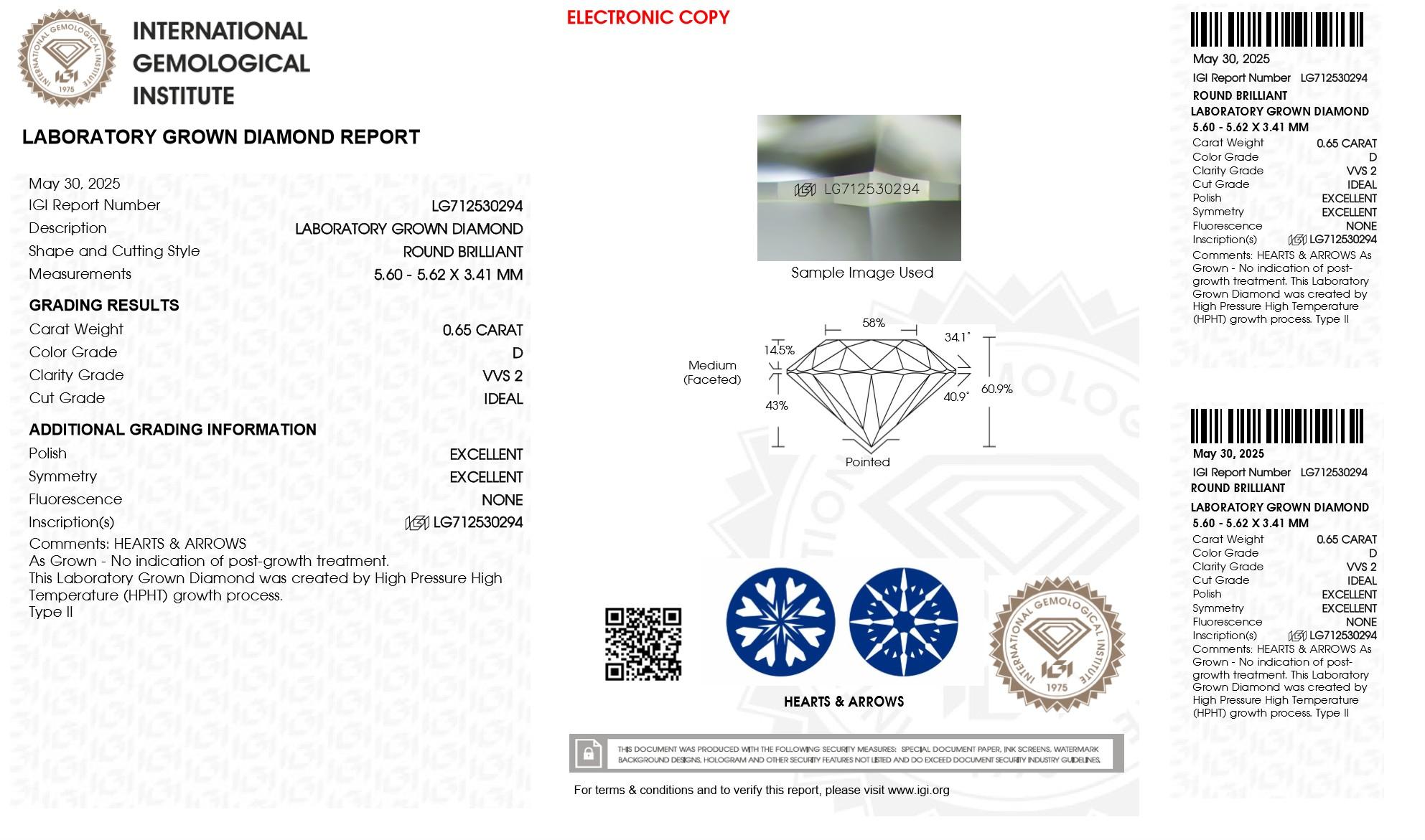 New 1.31 CTW Lab Grown Pair of Diamond Earrings D, VVS2 | Hearts & Arrows Ideal Cut | Estimated Retail Value: $2,400 (UGL & IGI)