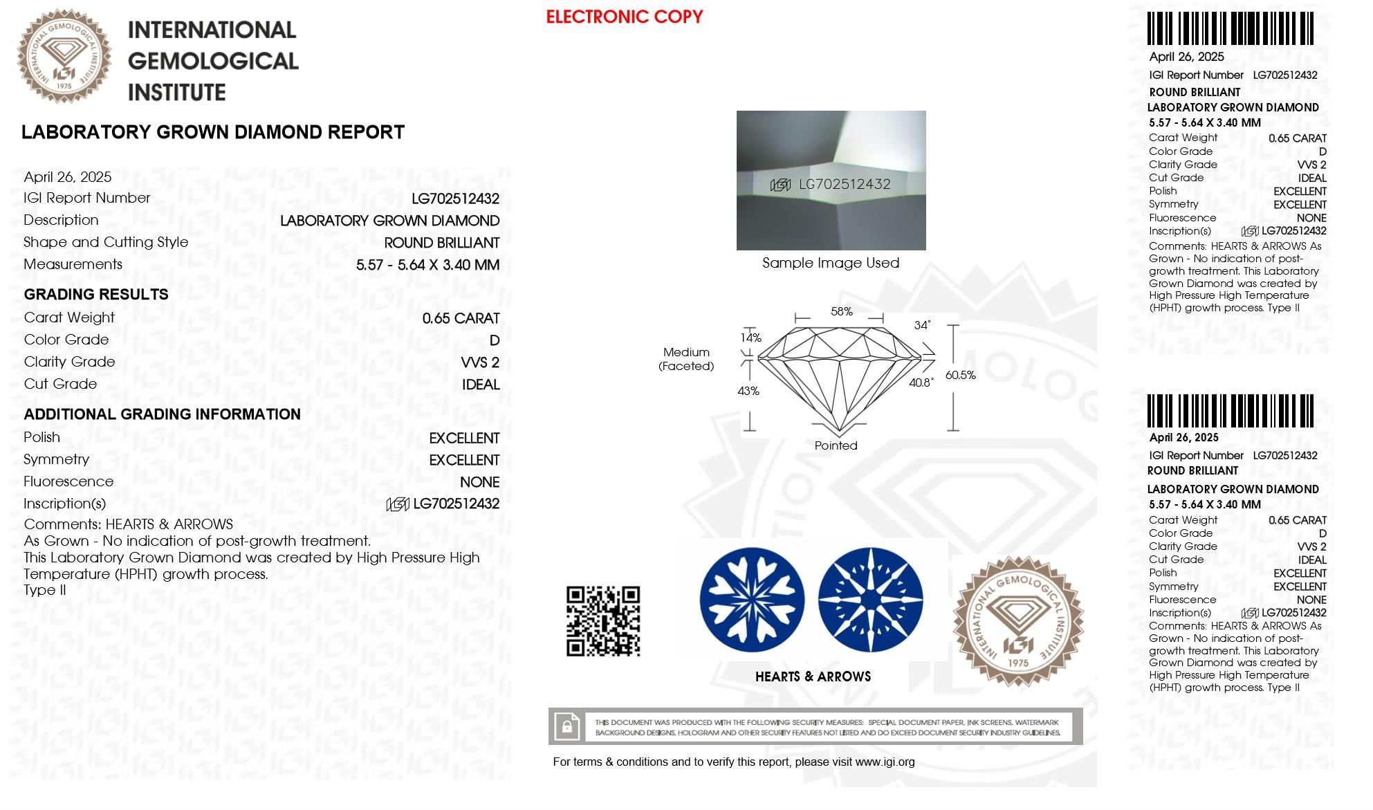 The diamonds feature precision laser inscriptions with the IGI certificate numbers, ensuring authenticity and traceability.