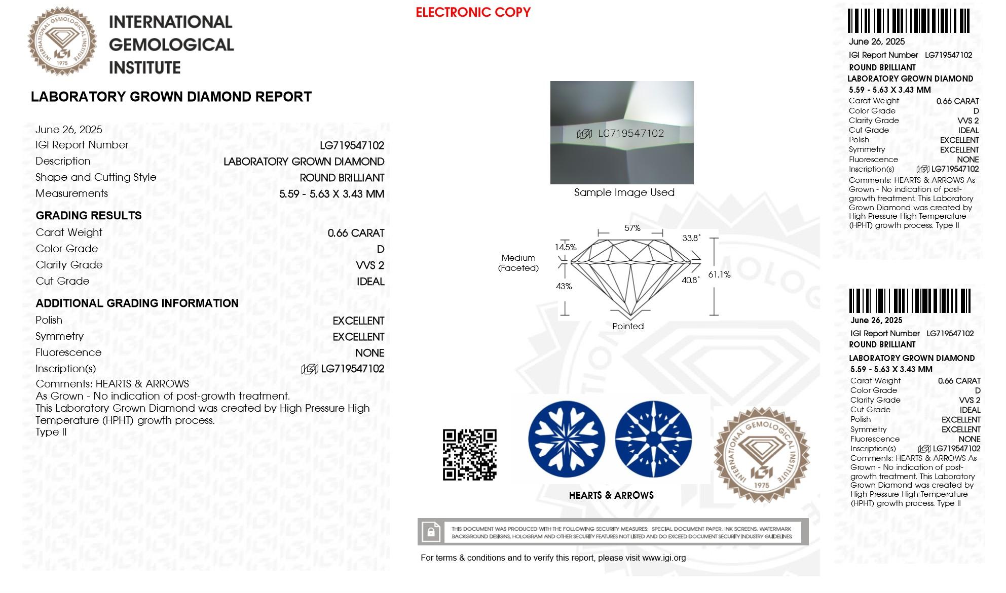 The diamonds feature precision laser inscriptions with the IGI certificate numbers, ensuring authenticity and traceability.