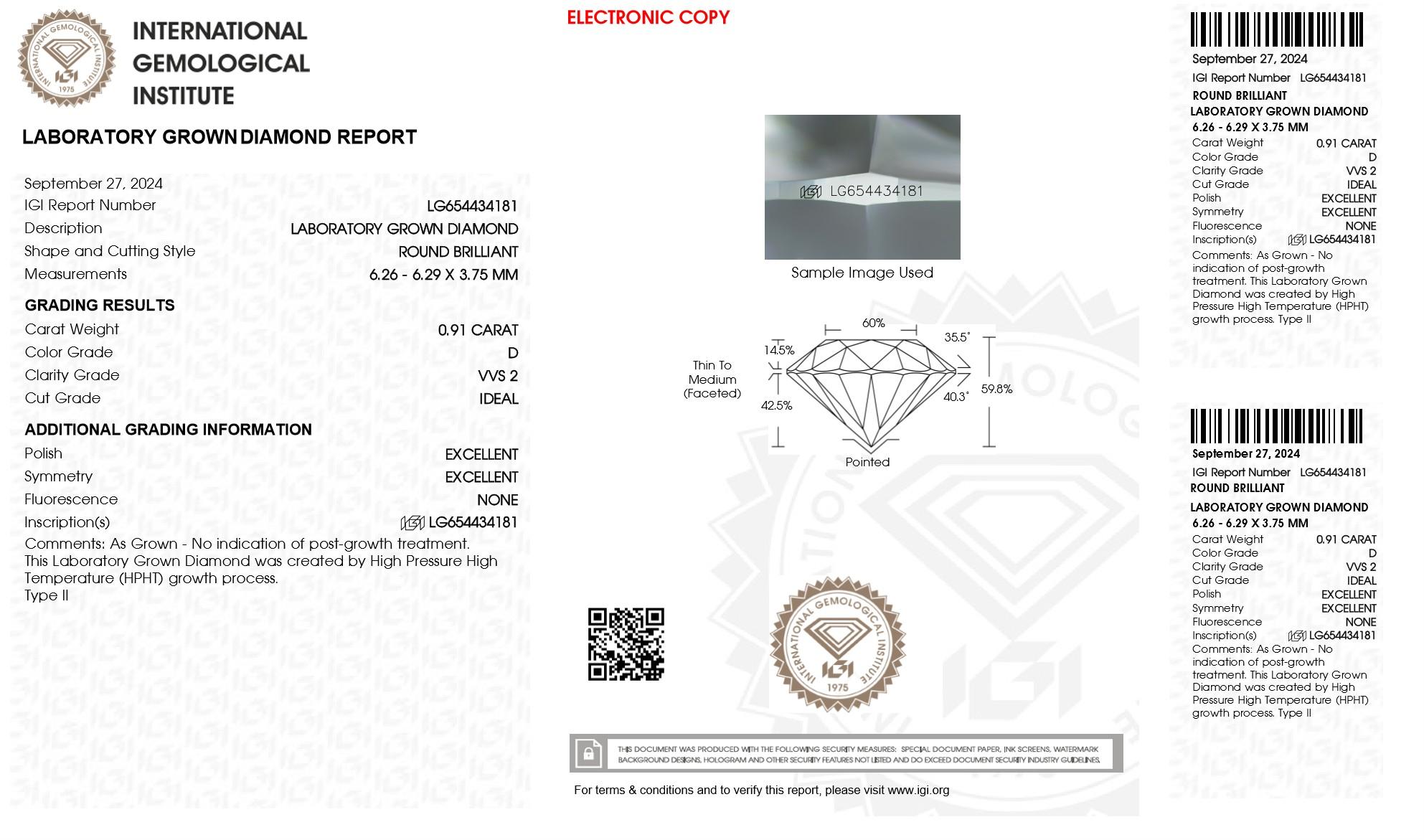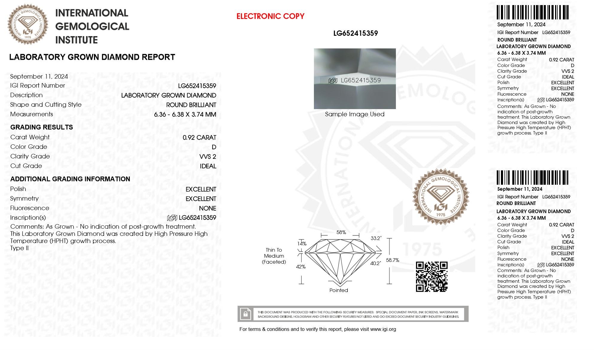 The diamonds feature precision laser inscriptions with the IGI certificate numbers, ensuring authenticity and traceability.