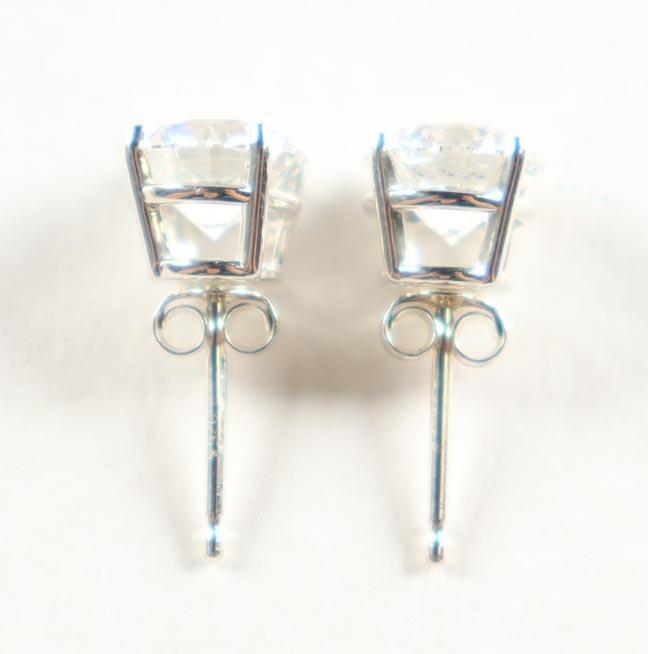 One New Pair of Round Brilliant Diamond Stud Earrings. Set In Sterling Silver Mountings.