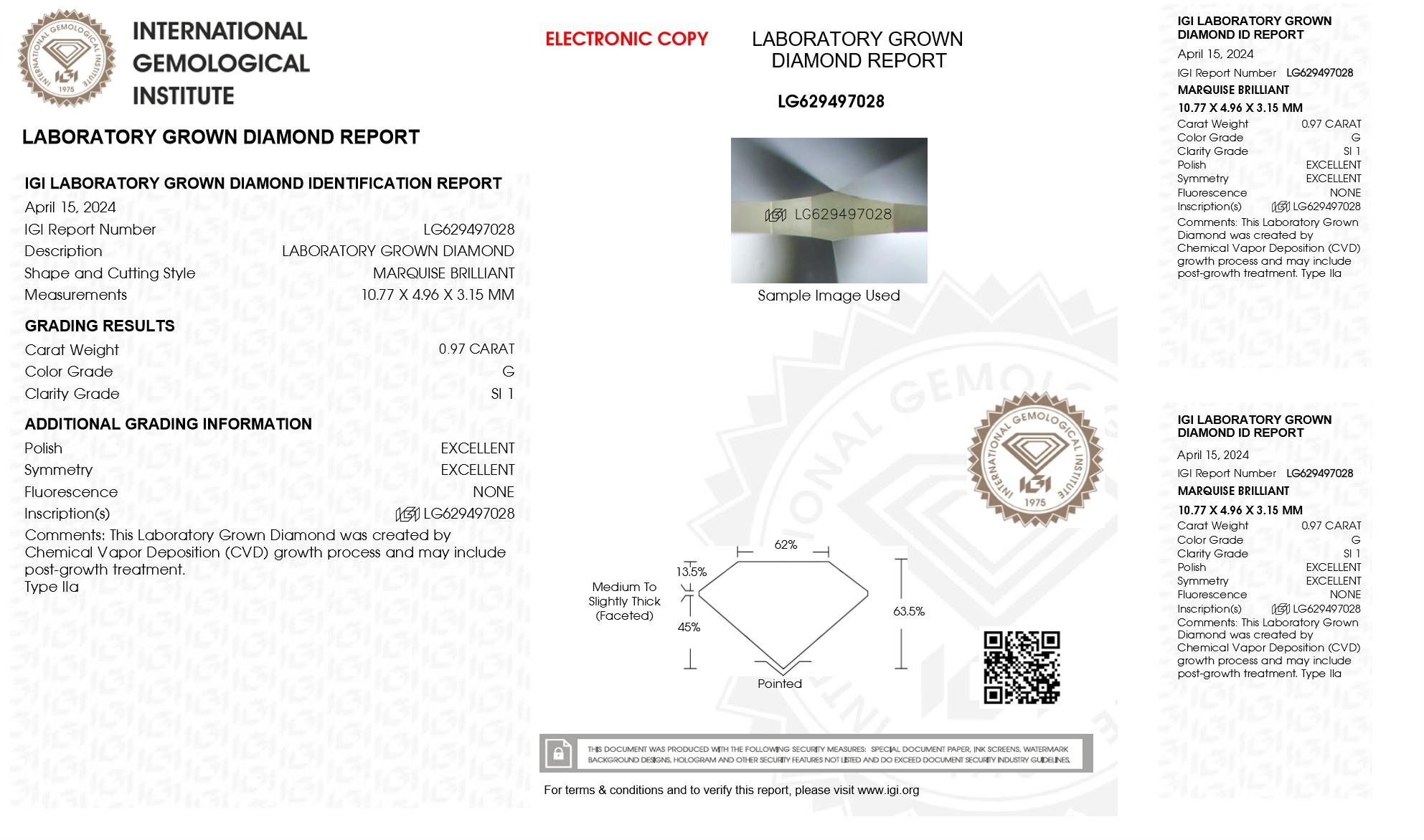 .97 Carats Lab Grown Diamond Loose G, SI1 (IGI Cert)