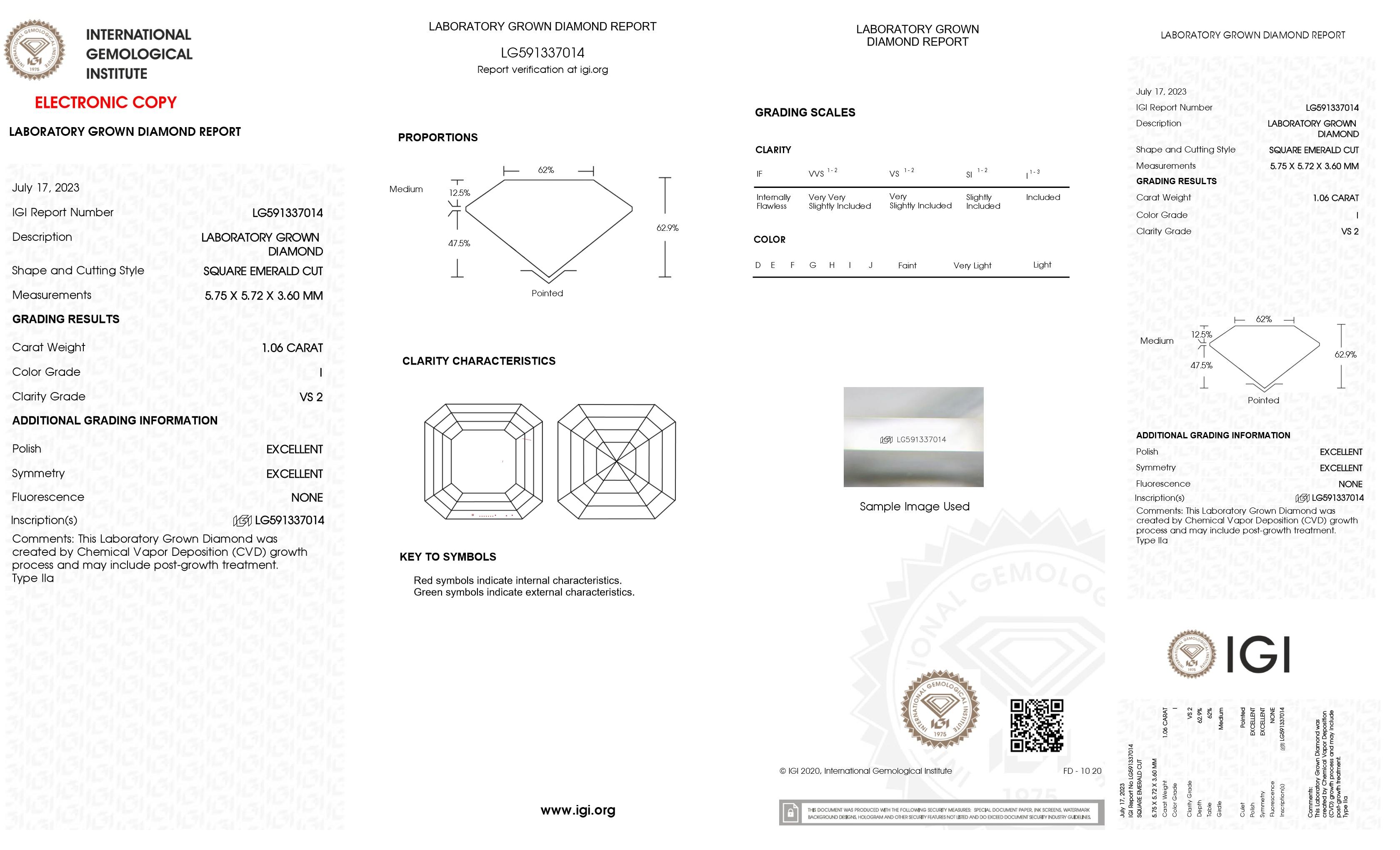 This piece includes paperwork from the International Gemological Institute (IGI).