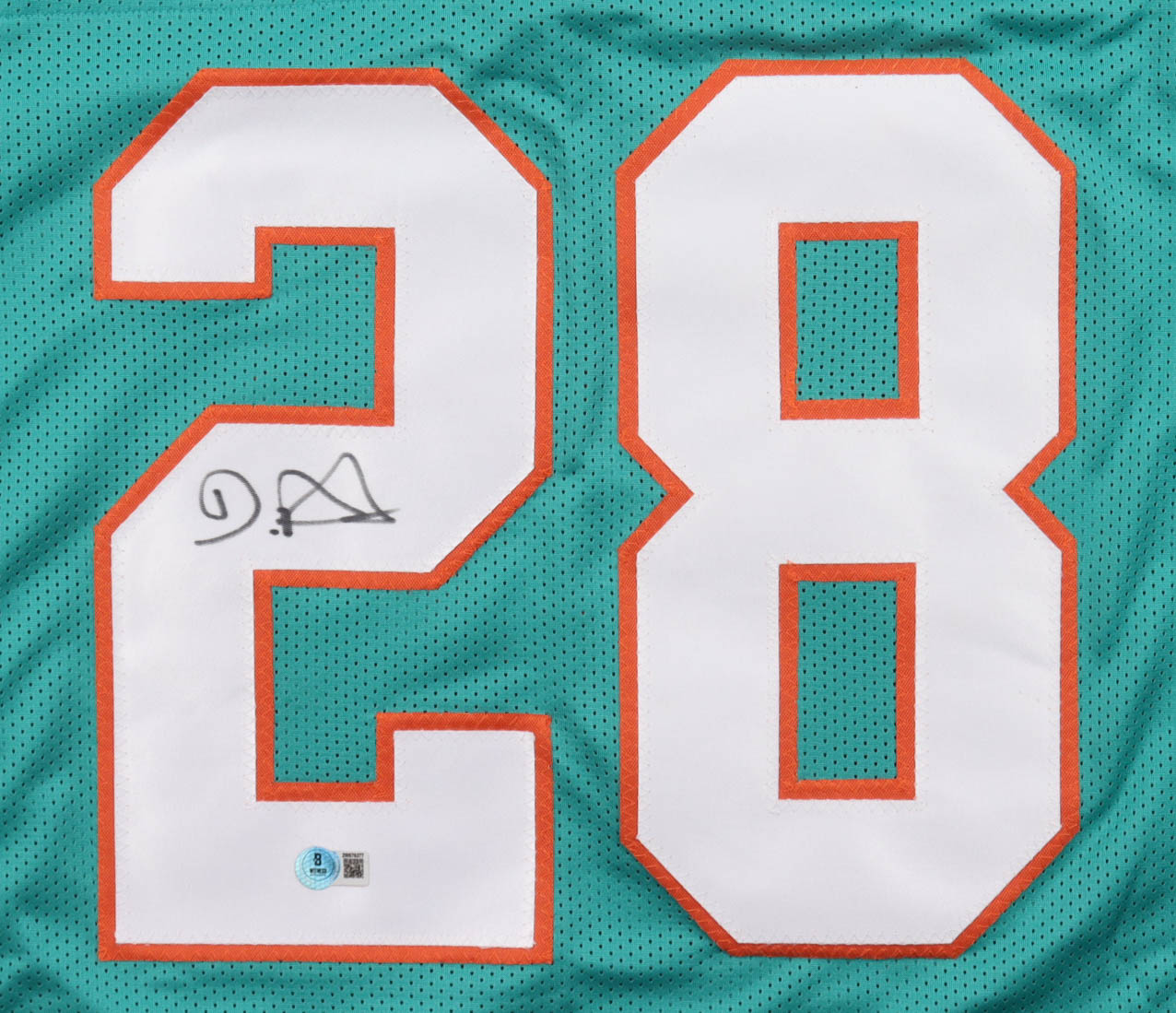 Custom jersey with everything sewn on, size XL. Has been hand-signed by De'Von Achane (De'Von Achane).
