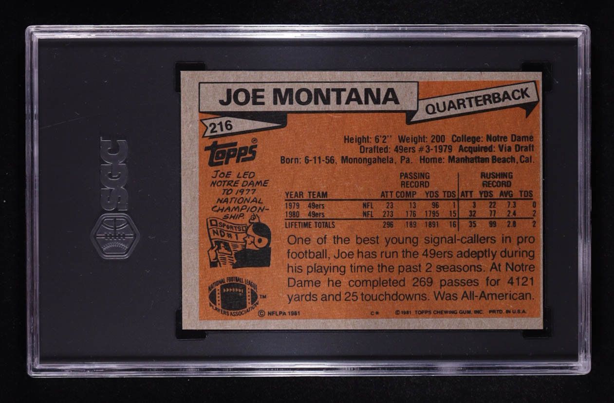 Joe Montana 1981 Topps #216 RC (SGC 6)