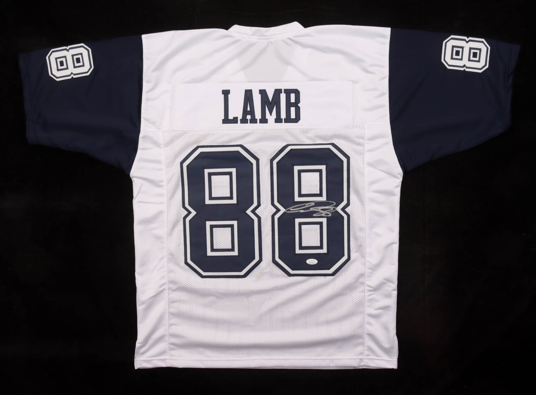 Custom jersey with everything sewn on, size XL. Hand-signed by CeeDee Lamb (Dallas Cowboys). Please note, there is a slight stain between the reverse numbers.