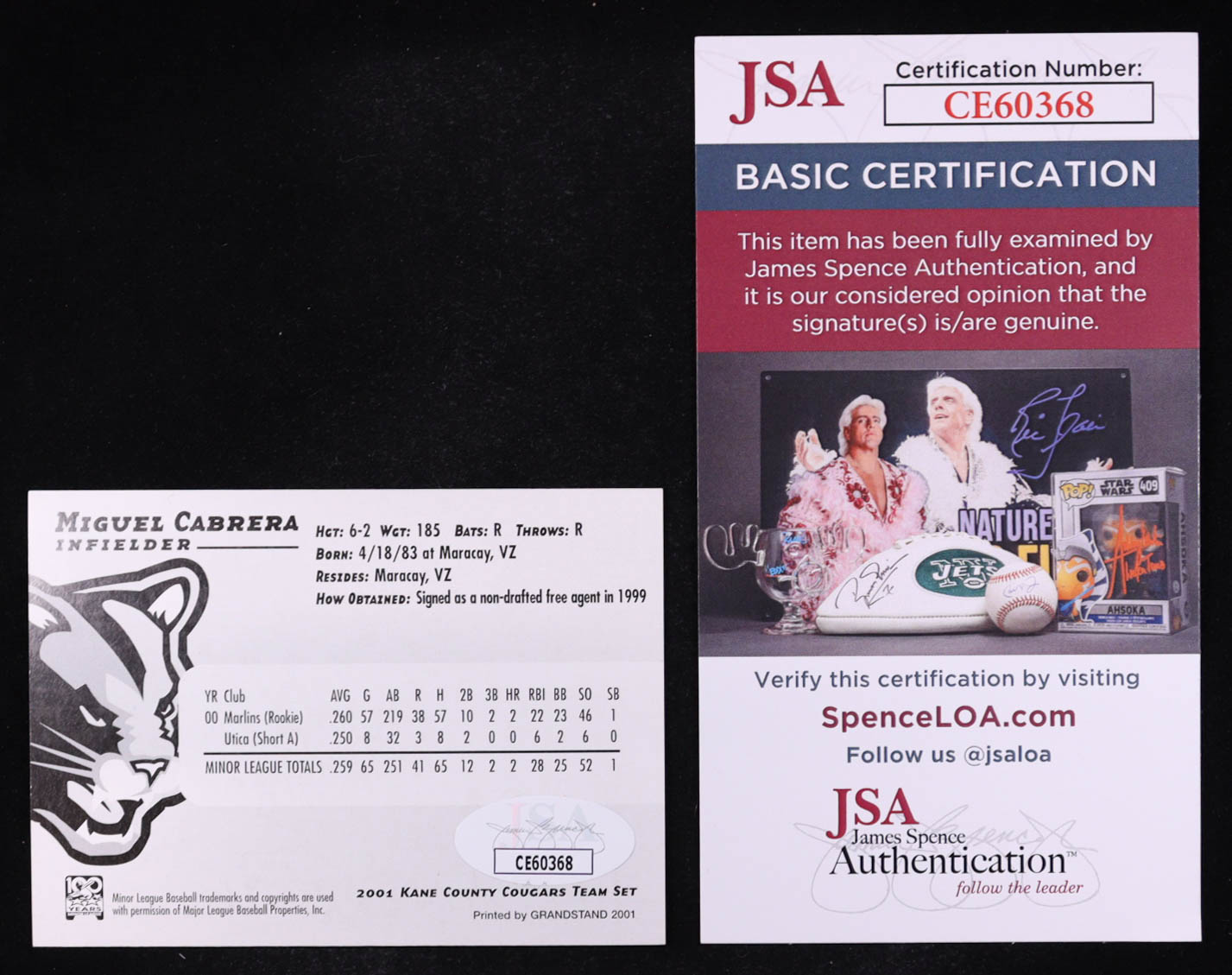 Miguel Cabrera Signed 2001 Kane County Cougars Grandstand #4 RC (JSA)