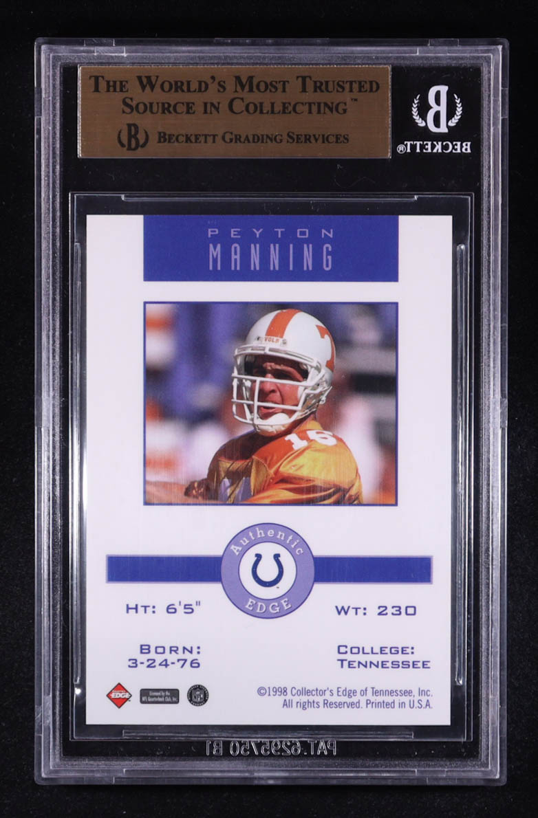 Peyton Manning 1998 Collector's Edge Peyton Manning Promos #NNO RC / Holding Jersey (BGS 9.5)