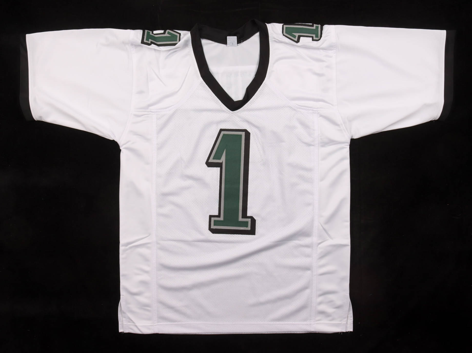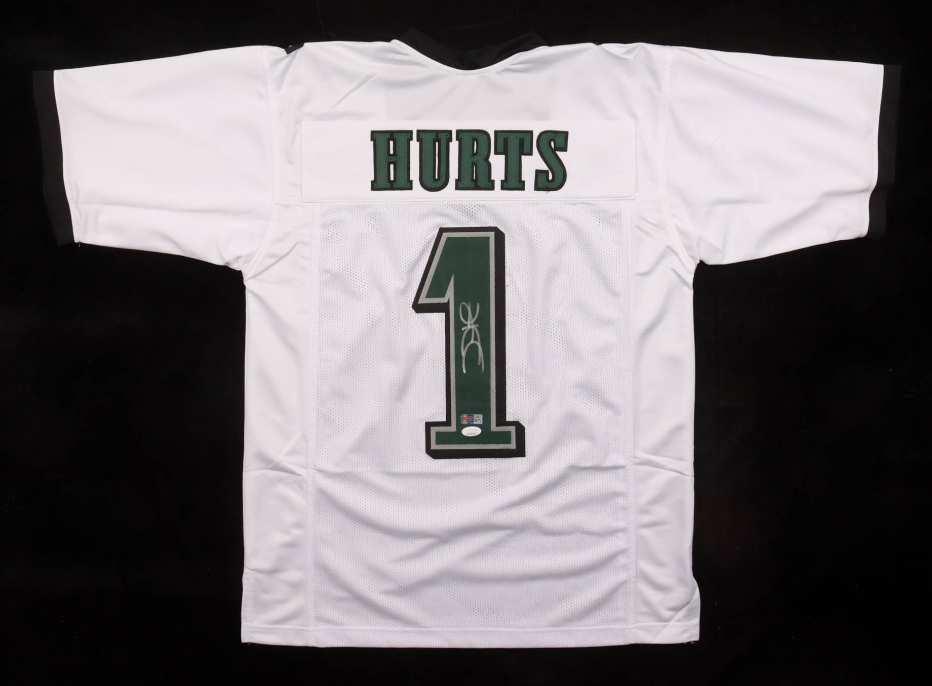 Custom jersey with everything sewn on, size XL. Hand-signed by Jalen Hurts (Philadelphia Eagles).