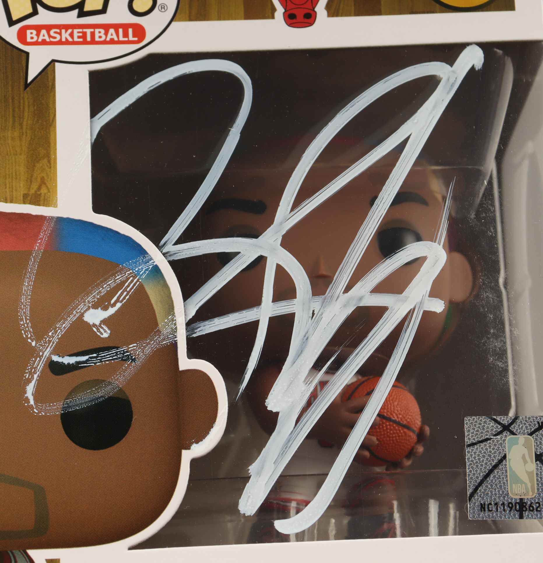 Vinyl figure measures approximately 4" tall and has been hand-signed by Dennis Rodman (Chicago Bulls, HOF).
