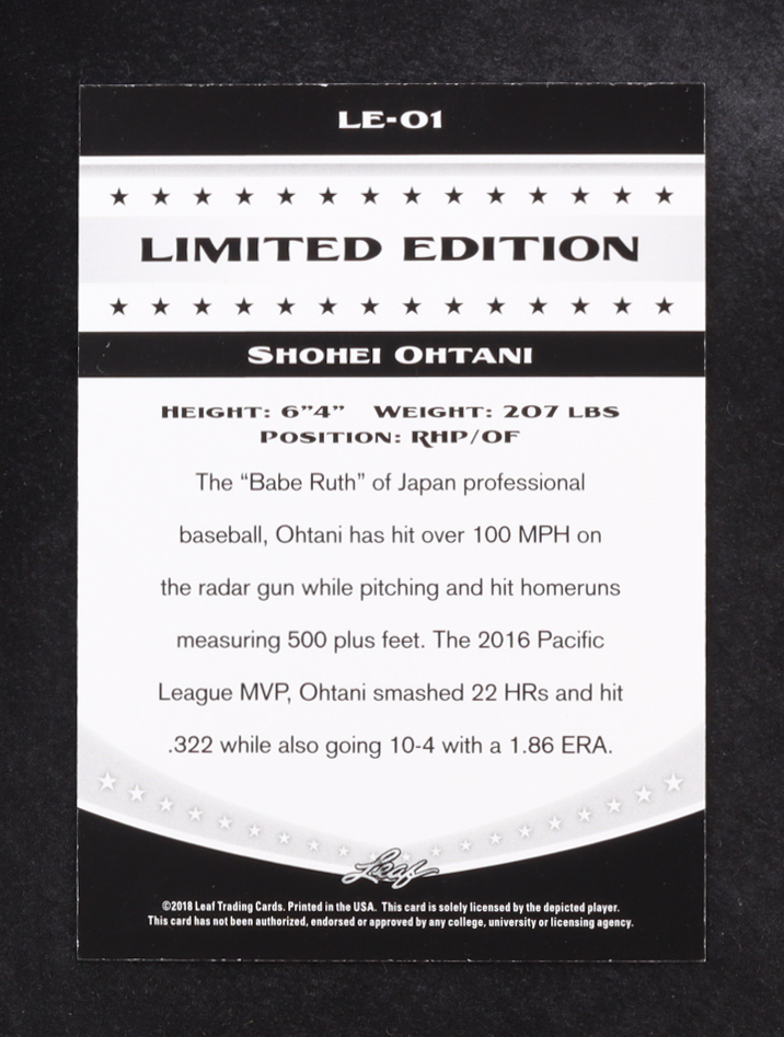 Shohei Ohtani 2018 Leaf Ohtani Limited Edition #LE01 RC