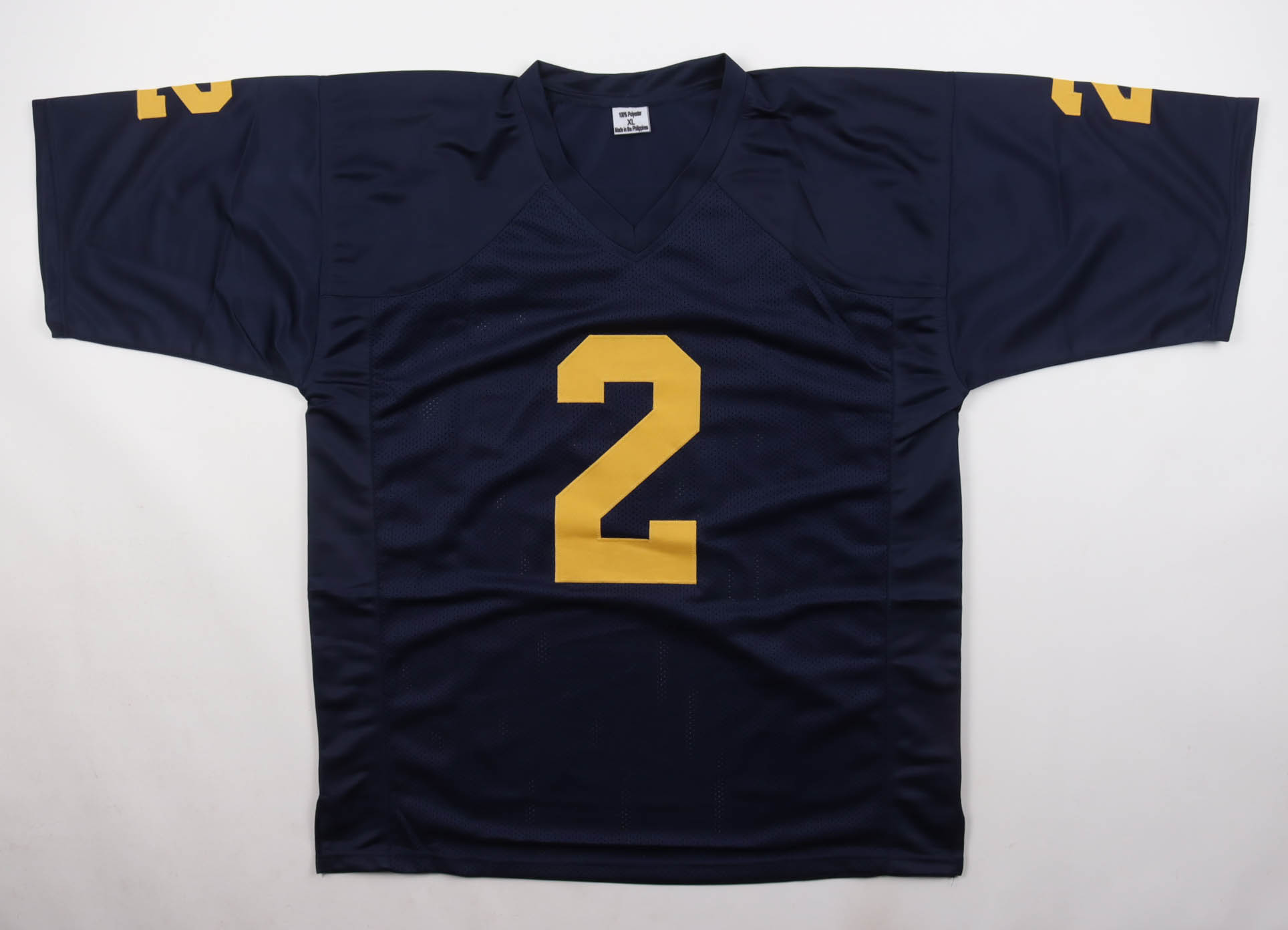 Custom jersey with everything sewn on, size XL. Hand-signed by Charles Woodson.