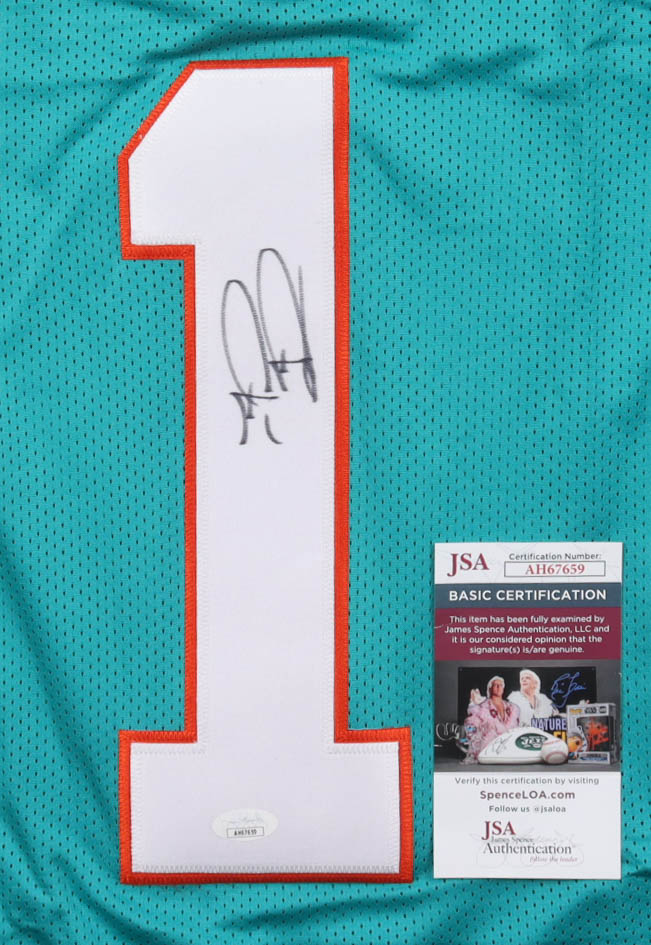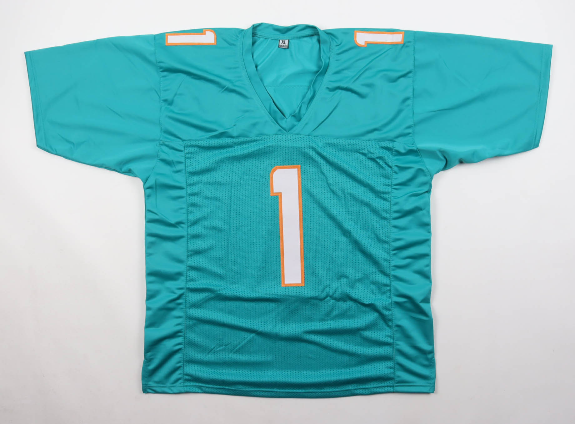 Custom jersey with everything sewn on, size XL. Hand-signed by Tua Tagovailoa.