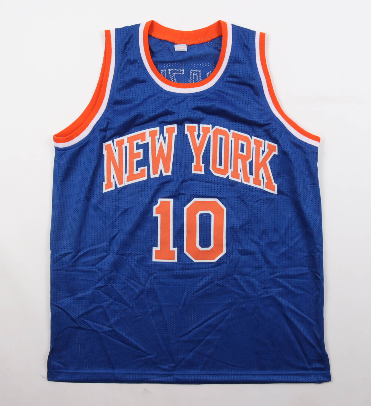 Custom jersey with everything sewn on, size XL. Hand-signed by Walt Frazier (New York Knicks, HOF).