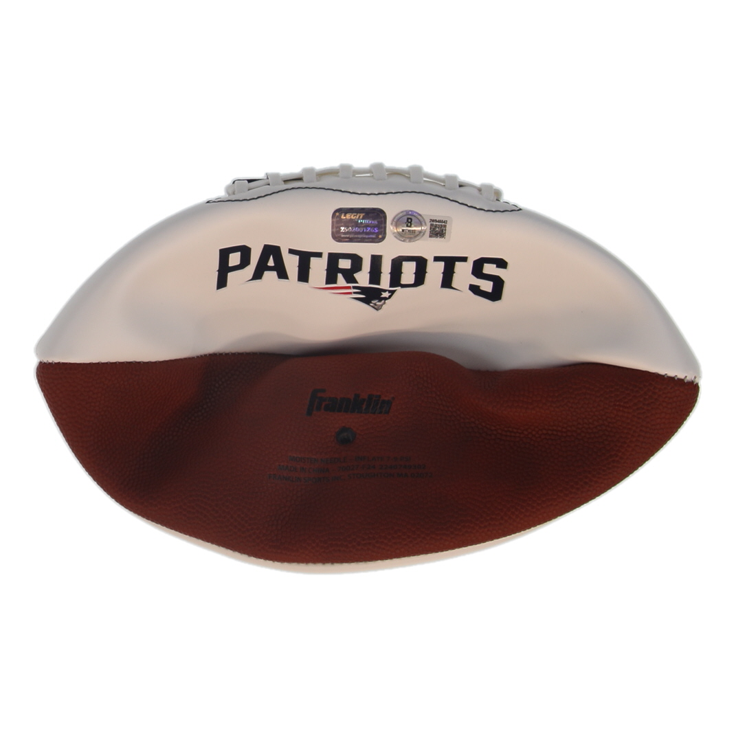 Franklin New England Patriots Logo Football. Hand-signed by Christian Gonzalez. Please note, the football does not hold air.