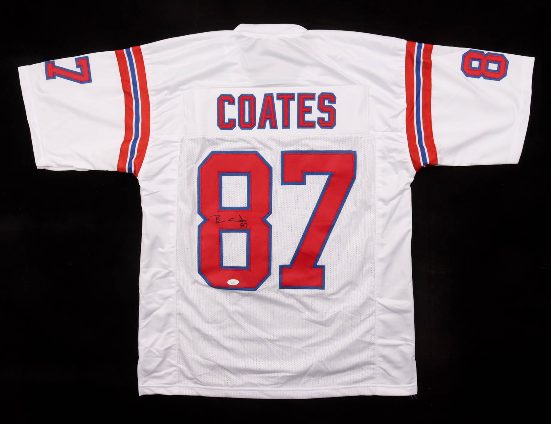 Custom jersey with everything sewn on, size XL. Hand-signed by Ben Coates (New England Patriots).