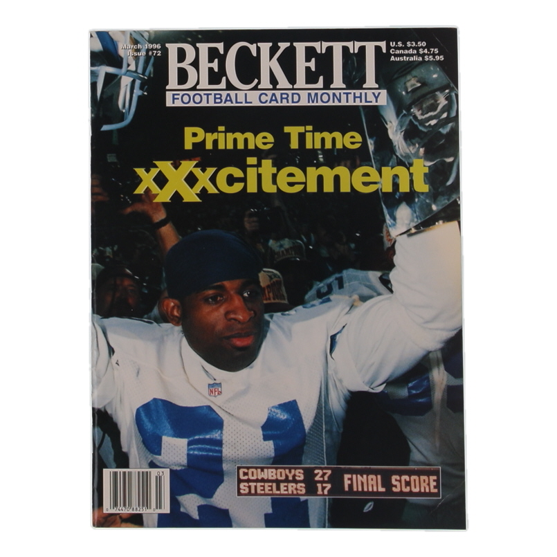 March 1996 "Beckett Football Card Monthly" that has been hand-signed by Curtis Martin (New England Patriots, HOF). Please see photos regarding the details and condition of the item.