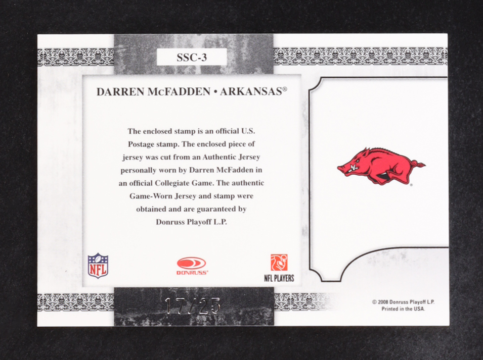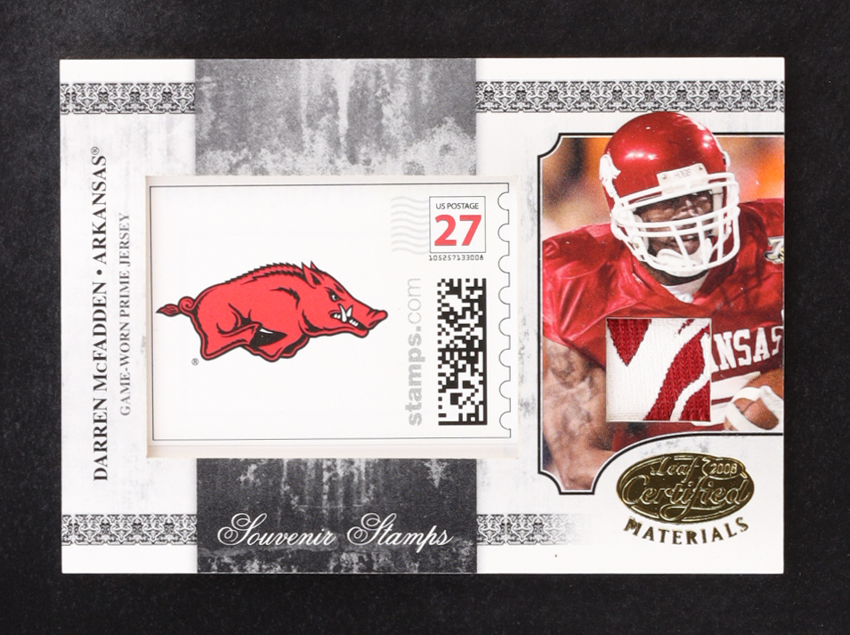 Darren McFadden 2008 Leaf Certified Materials Souvenir Stamps College Material College Logo Prime #3 #17/25 RC