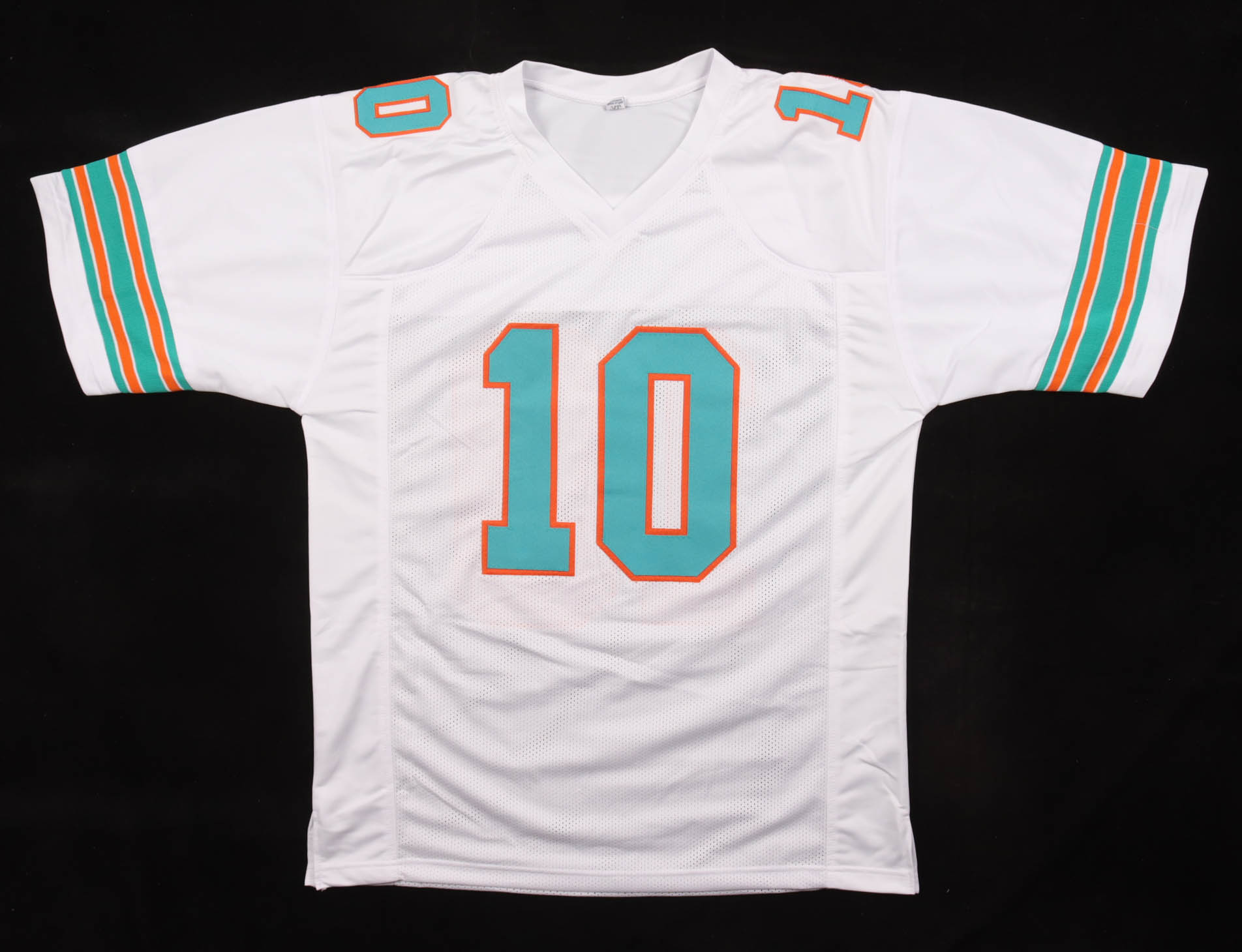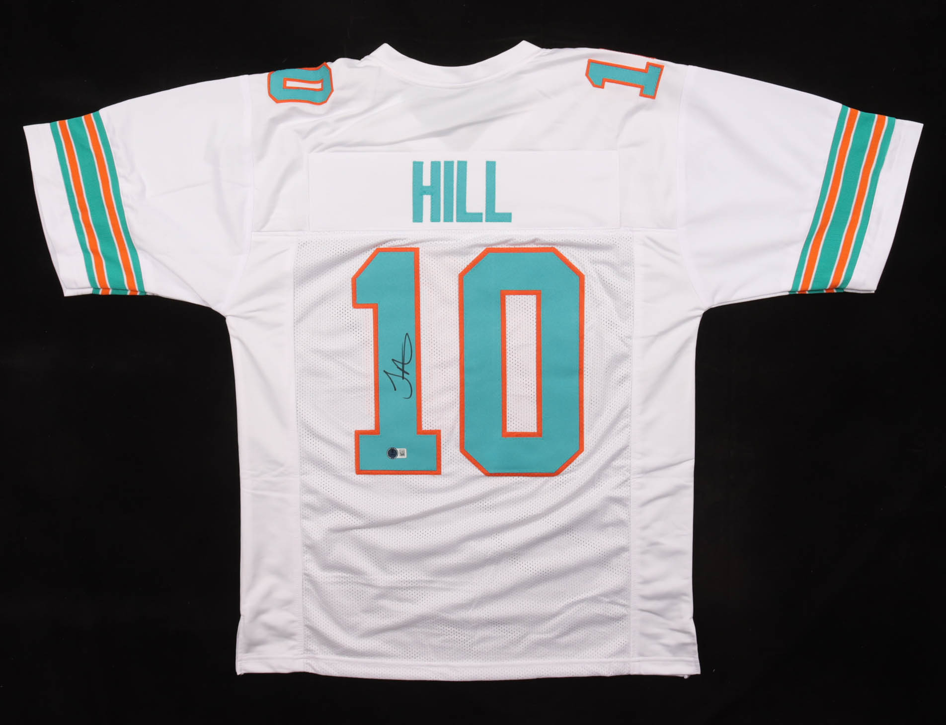 Custom jersey with everything sewn on, size XL. Hand-signed by Tyreek Hill (Miami Dolphins).