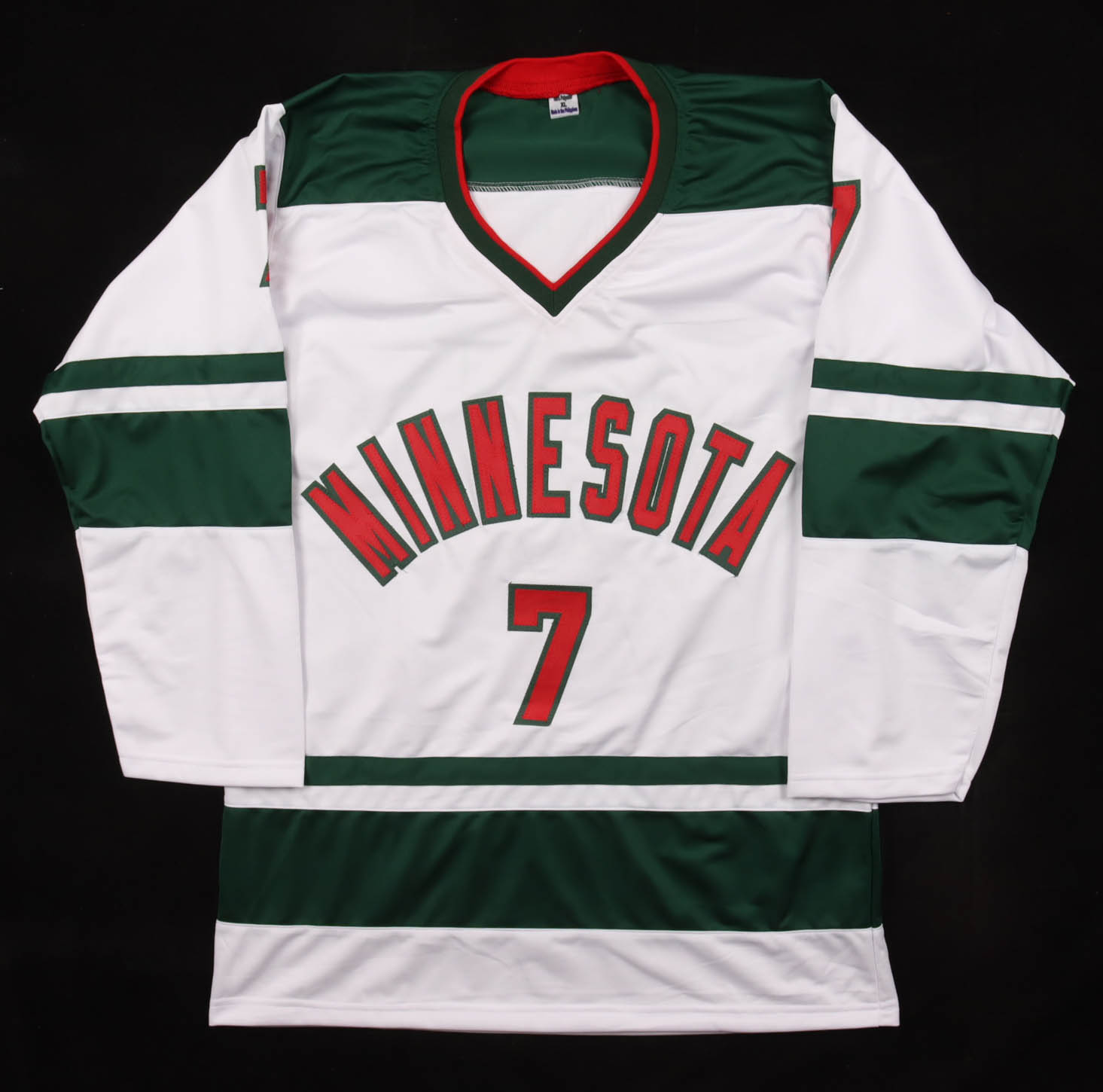 Custom jersey with everything sewn on, size XL. Hand-signed by Brock Faber (Minnesota Wild).