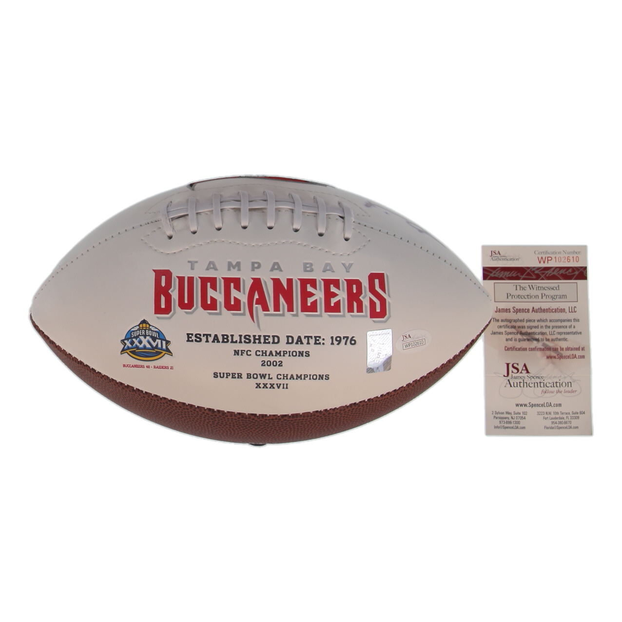Tampa Bay Buccaneers Logo Football. Hand-signed by Jameis Winston. Please note, the signature has bled and there are stains throughout the football.