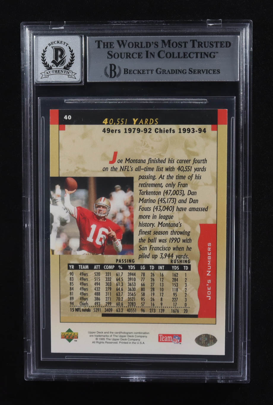 Joe Montana Signed 1995 Upper Deck Box Set 40,551 Yards #40 (BGS | Autograph Graded BGS 10)