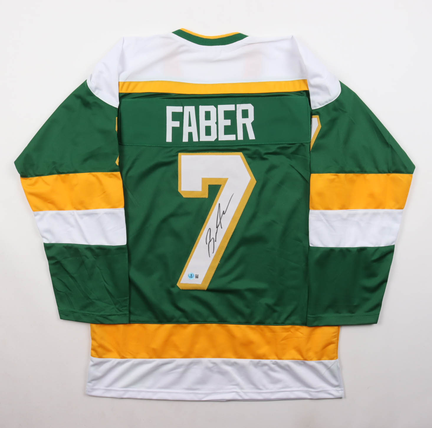 Custom jersey with everything sewn on, size XL. Hand-signed by Brock Faber (Minnesota Wild).