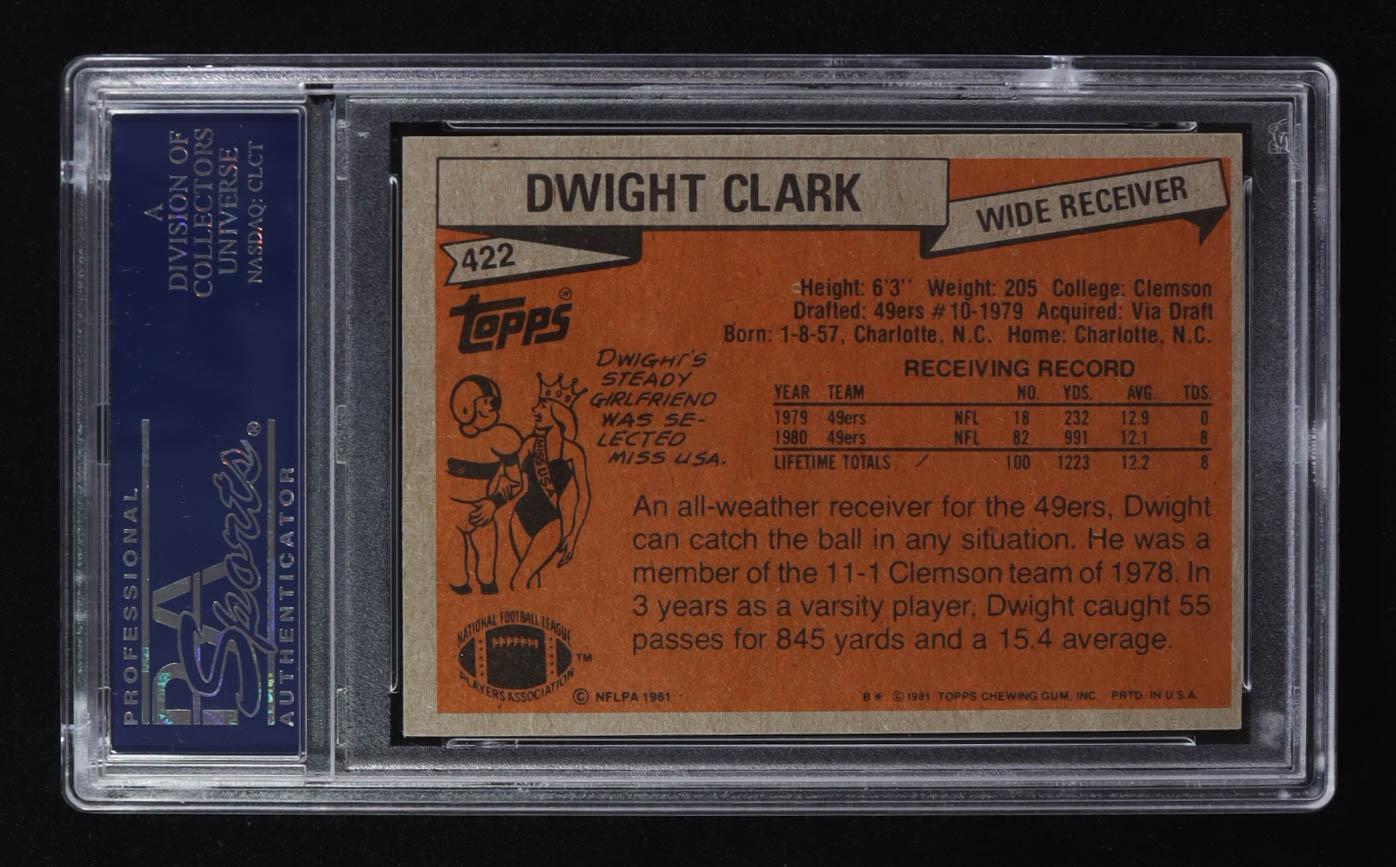 Dwight Clark Signed 1981 Topps Inscribed "The Catch 1.10.82" #422 (PSA)
