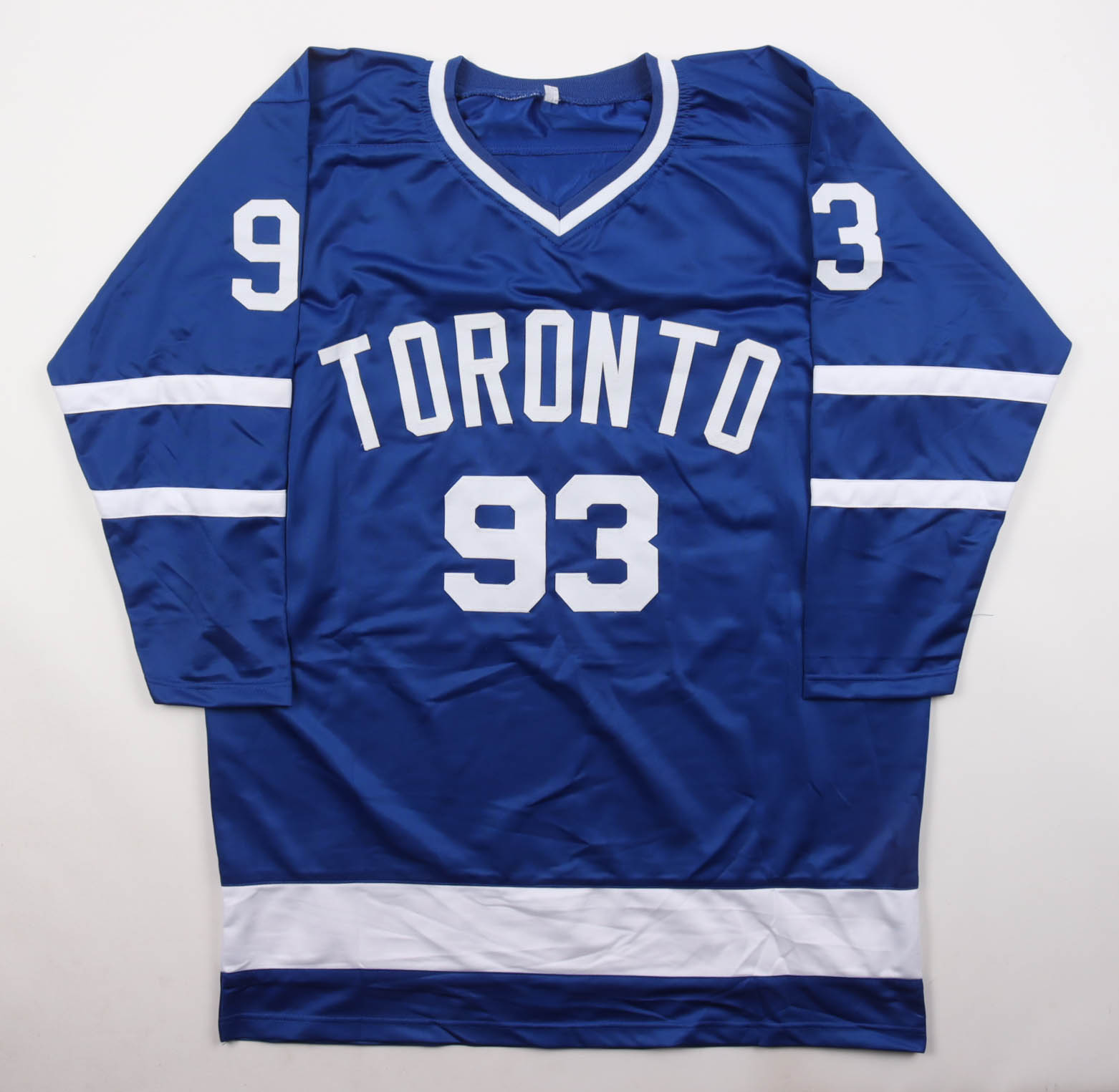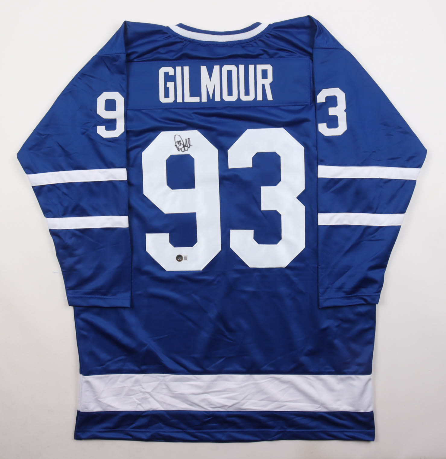 Custom jersey with everything sewn on, size XL. Hand-signed by Doug Gilmour (Toronto Maple Leafs, HOF).