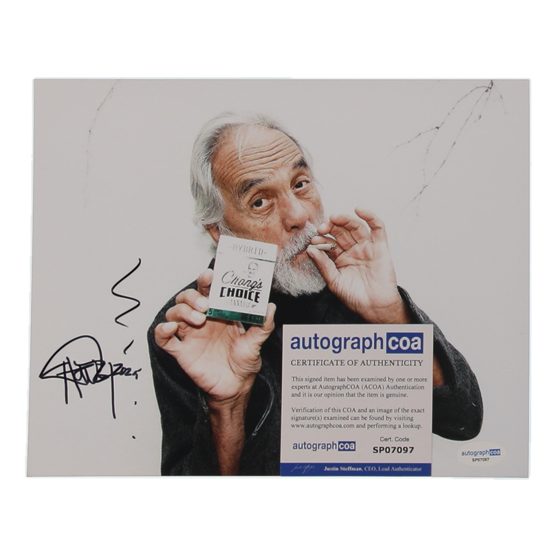 Photo measures 8" x 10" in size and has been hand-signed by Tommy Chong.