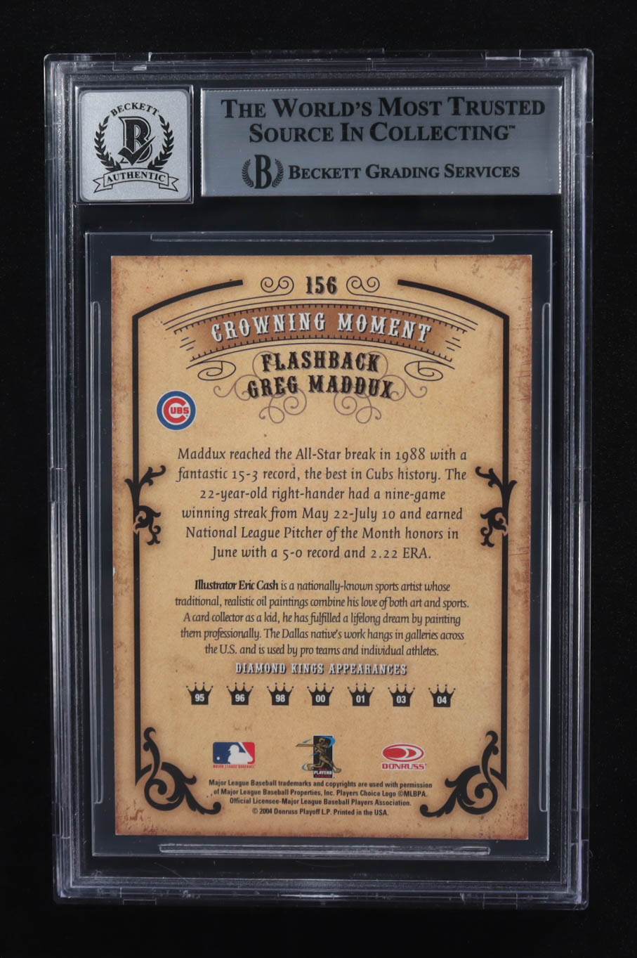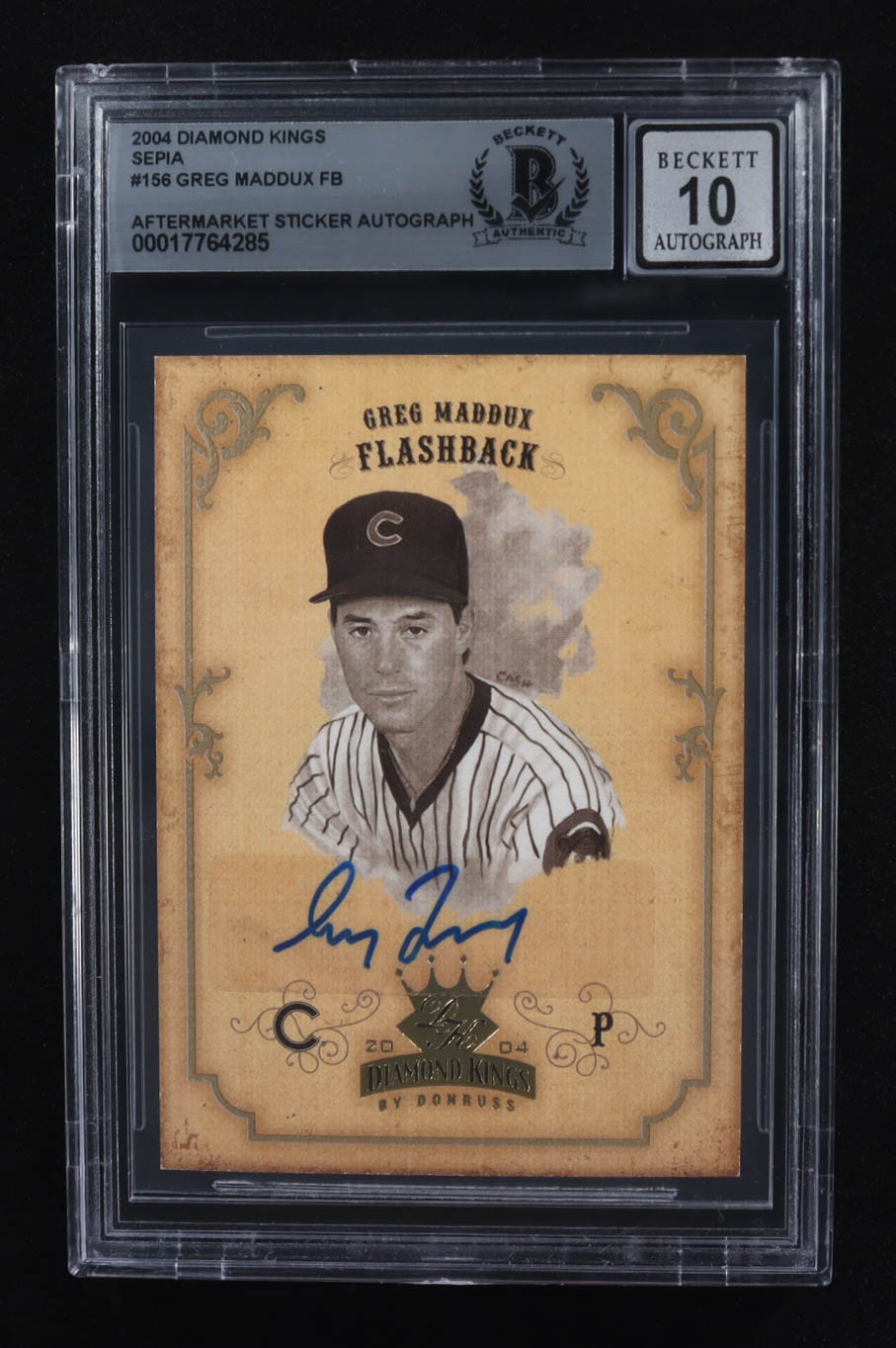 Greg Maddux Signed 2004 Diamond Kings Sepia Crowning Moment Flashback #156 (BGS | Autograph Graded BGS 10)