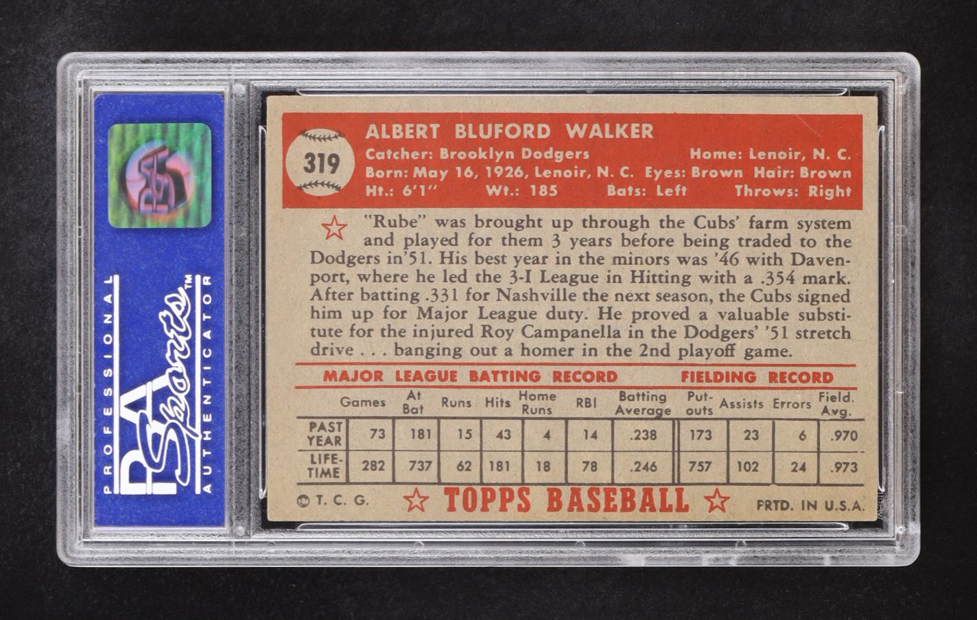 Rube Walker 1952 Topps #319 RC (PSA 5)
