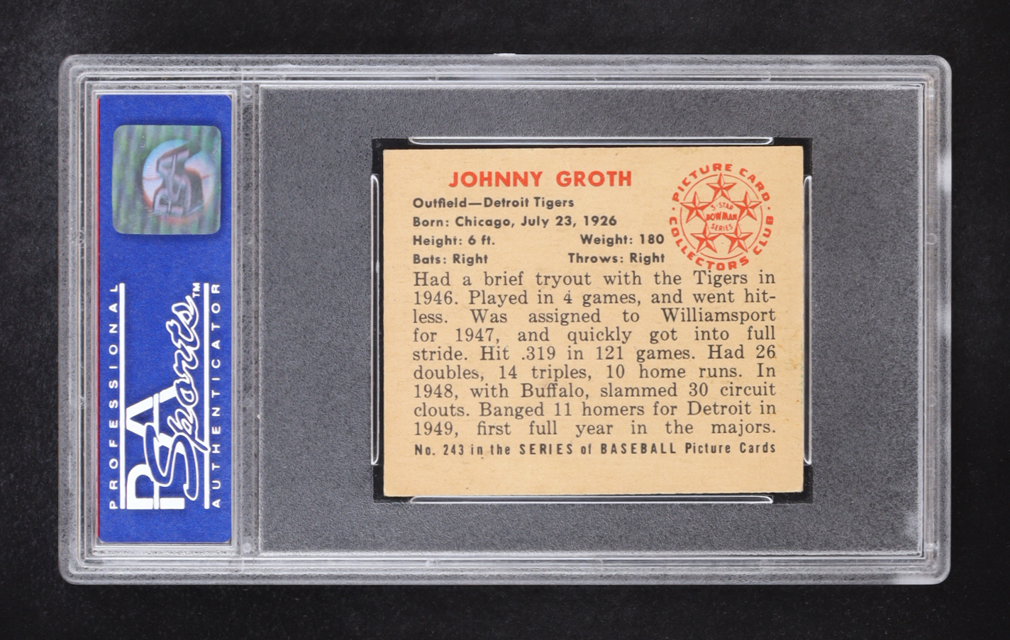 Johnny Groth 1950 Bowman #243 RC (PSA 6)