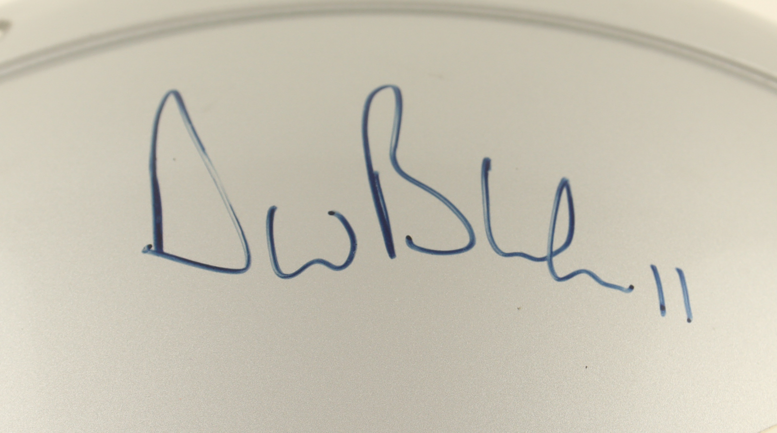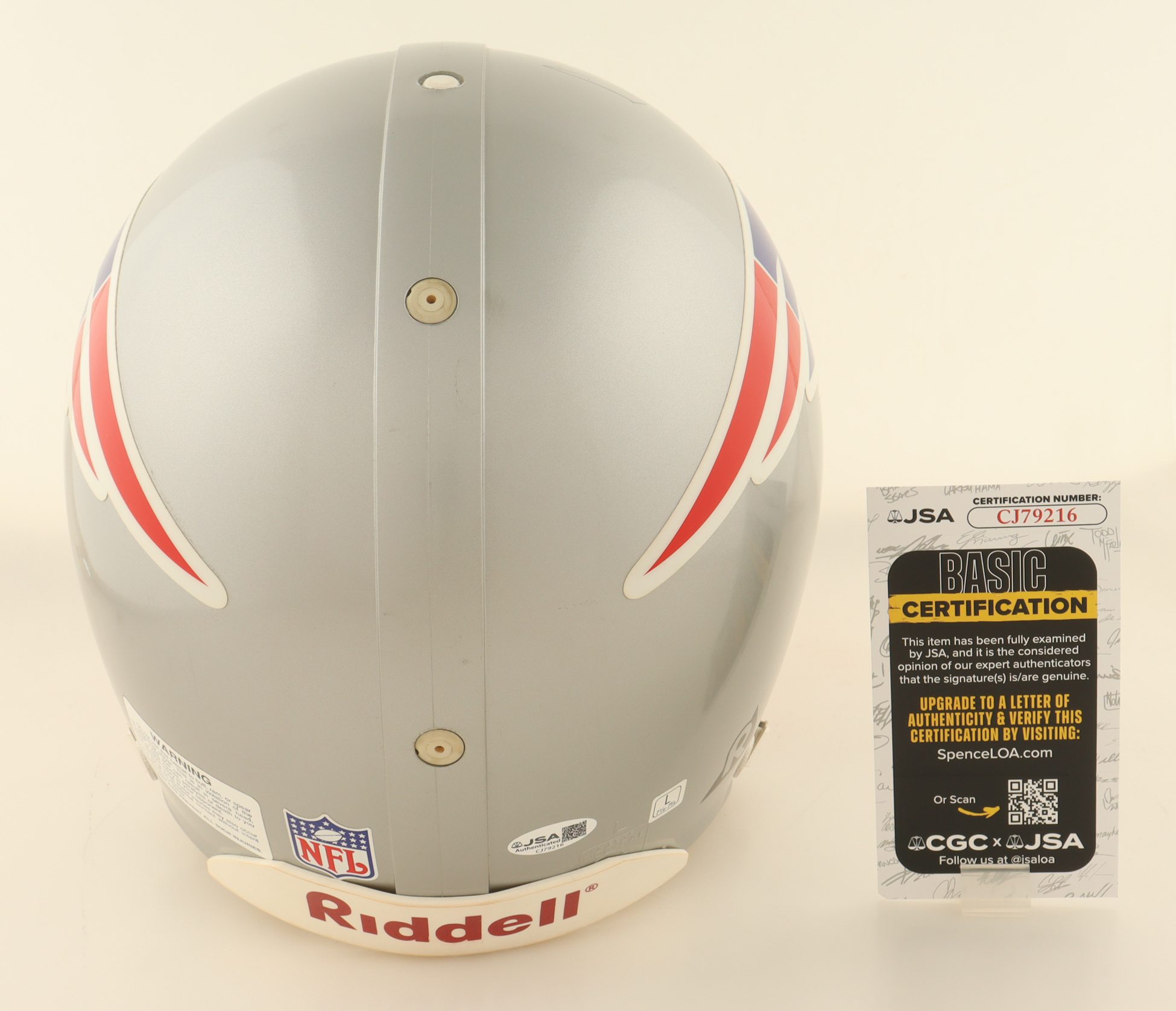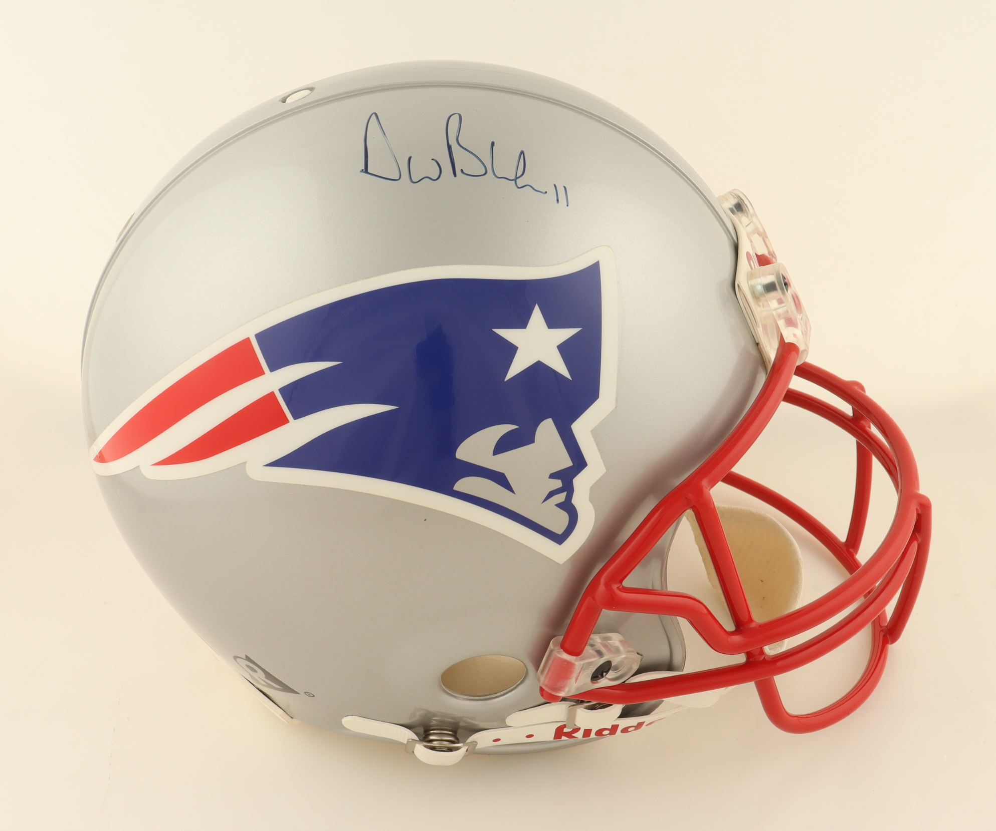 Riddell New England Patriots full-size authentic on-field speed helmet has been hand-signed by Drew Bledsoe.