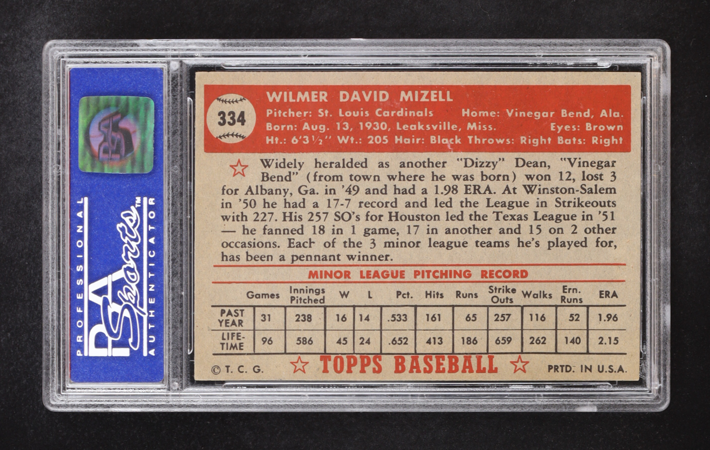 Wilmer Mizell 1952 Topps #334 RC (PSA 5)
