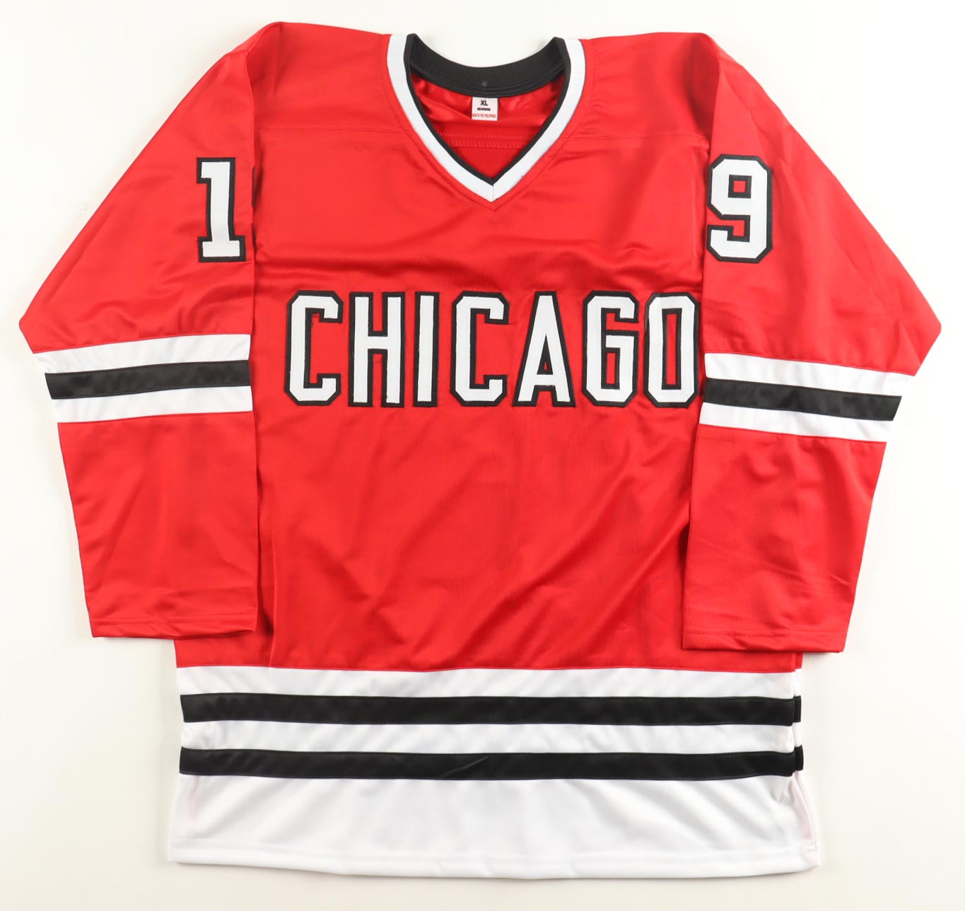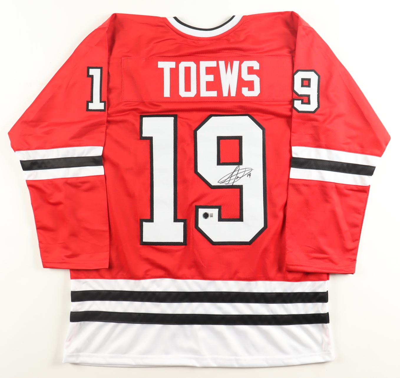 Custom jersey with everything sewn on, size XL. Hand-signed by Jonathan Toews