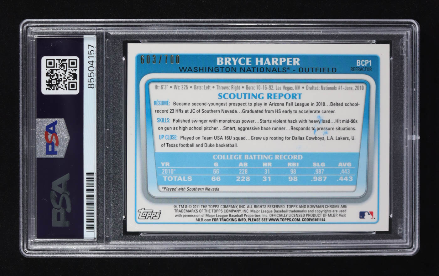 Bryce Harper Signed 2011 Topps Bowman Chrome #BCP1 RC #603/700 (PSA | Autograph Graded PSA 10)