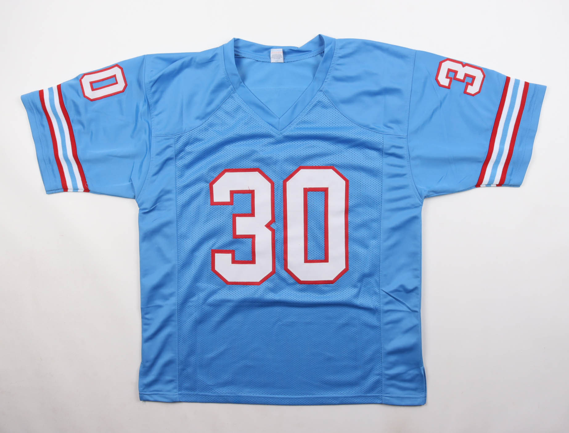 Custom jersey with everything sewn on, size XL. Hand-signed and inscribed by Mike Rozier.