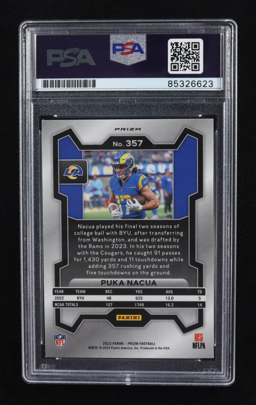 Puka Nacua Signed 2023 Panini Prizm Orange #357 RC (PSA | Autograph Graded PSA 10)