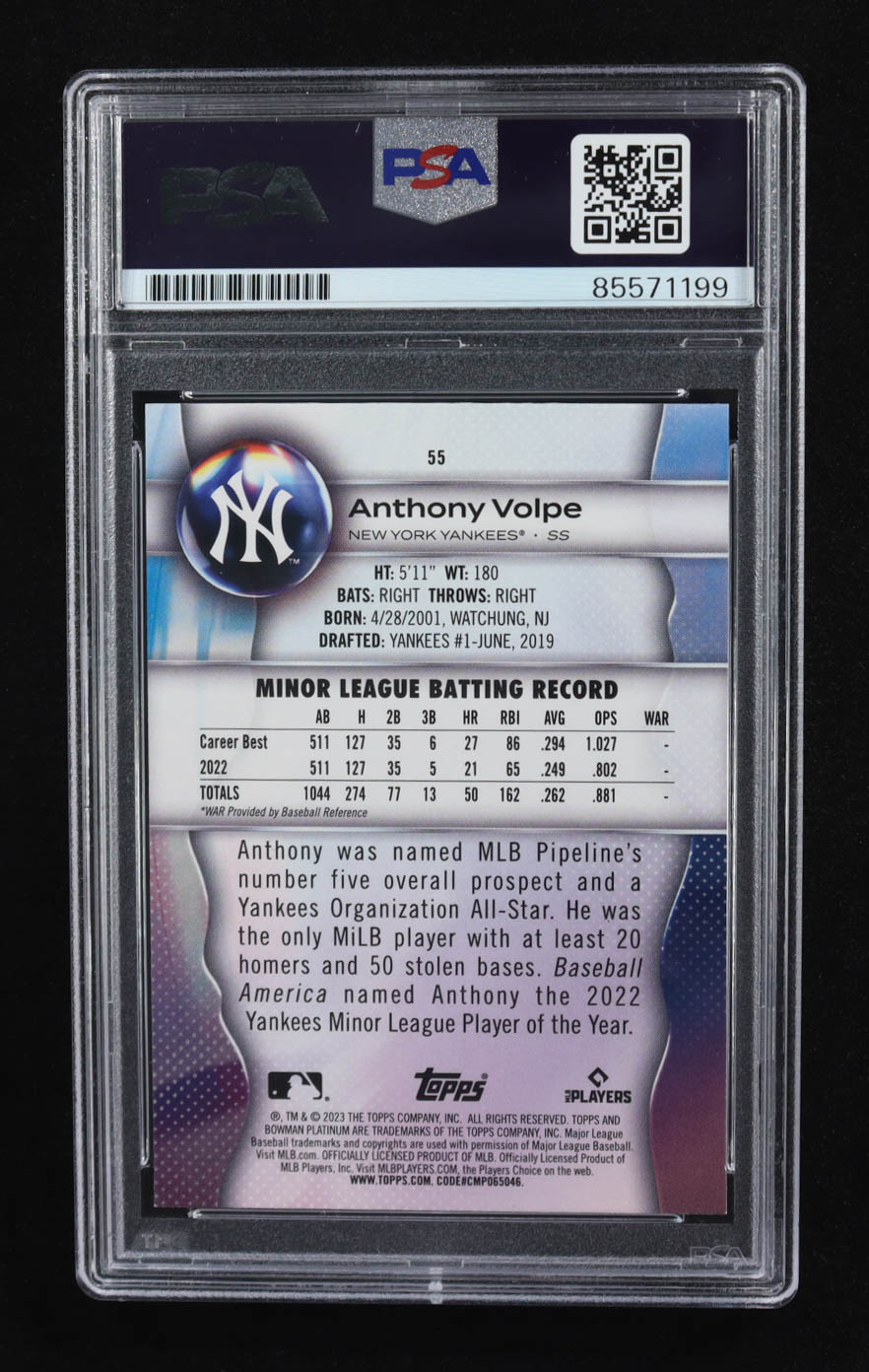 Anthony Volpe Signed 2023 Topps Bowman Platinum #55 RC (PSA | Autograph Graded PSA 10)