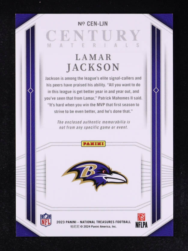 Lamar Jackson 2023 Panini National Treasures Century Materials #71 #19/99