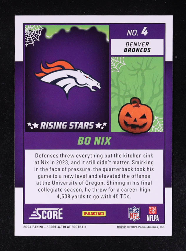 Bo Nix 2024 Score Halloween Rising Stars Pumpkin #4 RC