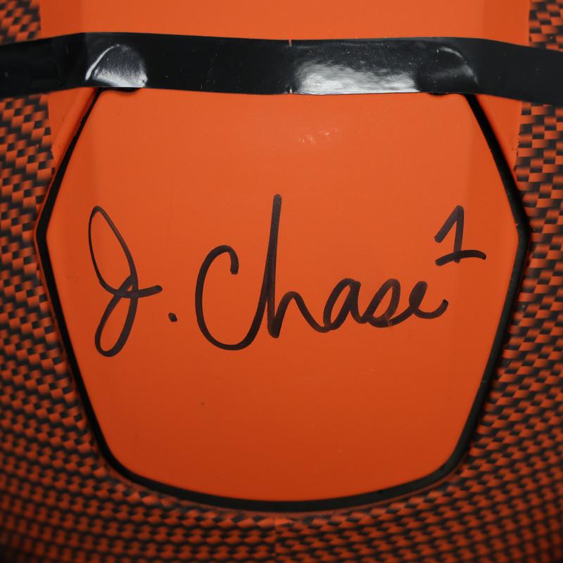 Riddell Cincinnati Bengals full-size authentic on-field hydrodipped speedflex helmet has been hand-signed by Ja'Marr Chase.