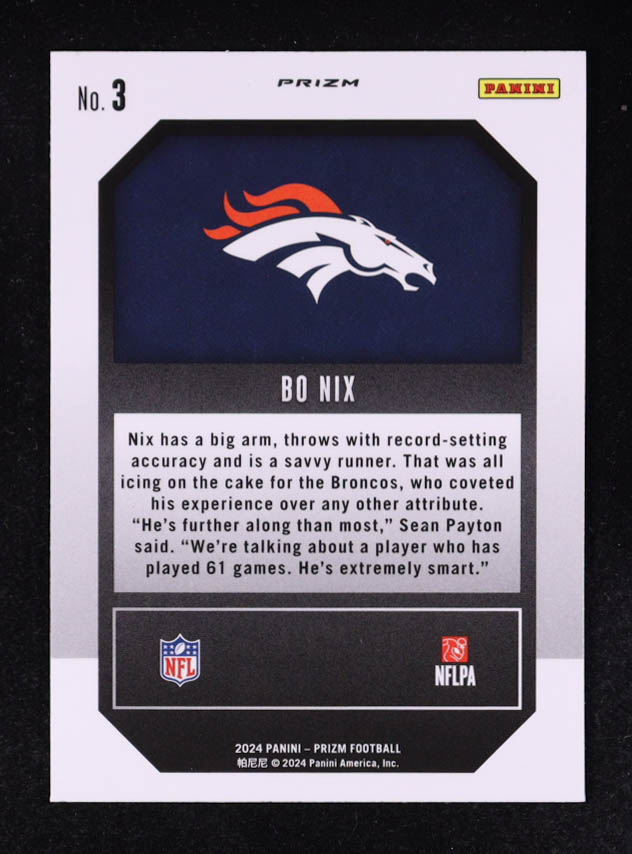 Bo Nix 2024 Panini Prizm Emergent Green Wave #3 RC