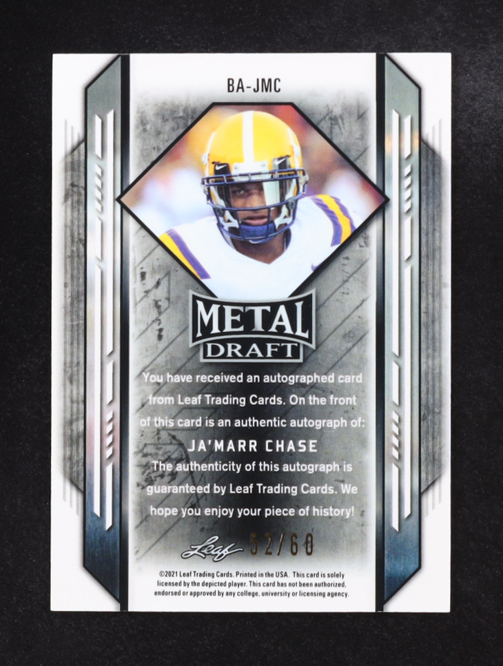Ja'Marr Chase 2021 Leaf Metal Draft Autographs Marble #BAJMC RC #52/60
