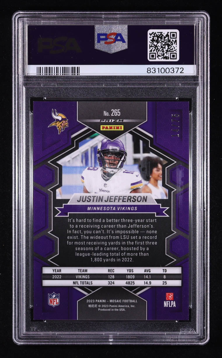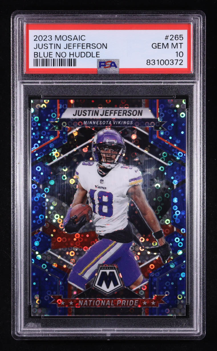 Justin Jefferson 2023 Panini Mosaic Mosaic No Huddle Blue #265 NP #14/75 (PSA 10)