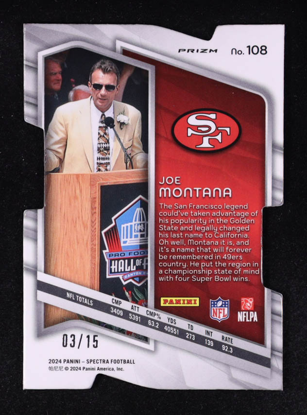 Joe Montana 2024 Panini Spectra Neon Orange Die Cut #108 #03/15