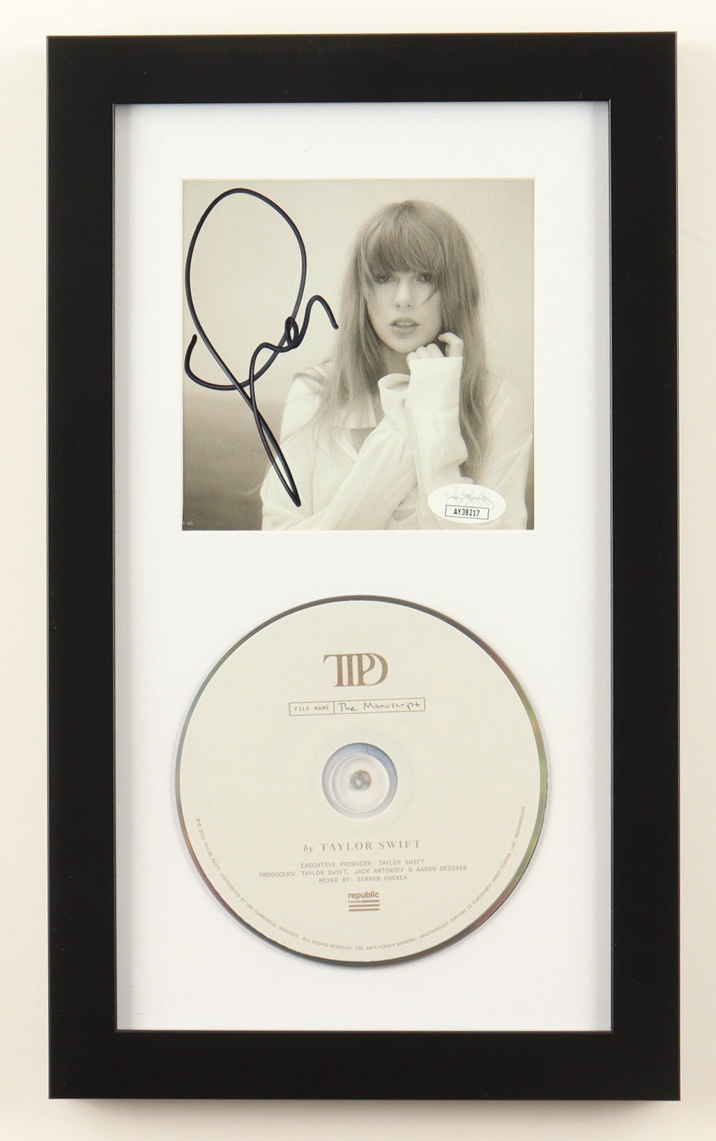 Custom frame measures approximately 8" x 13.5" in size. Features a CD insert that has been hand-signed by Taylor Swift.